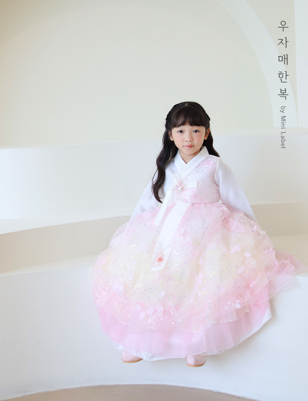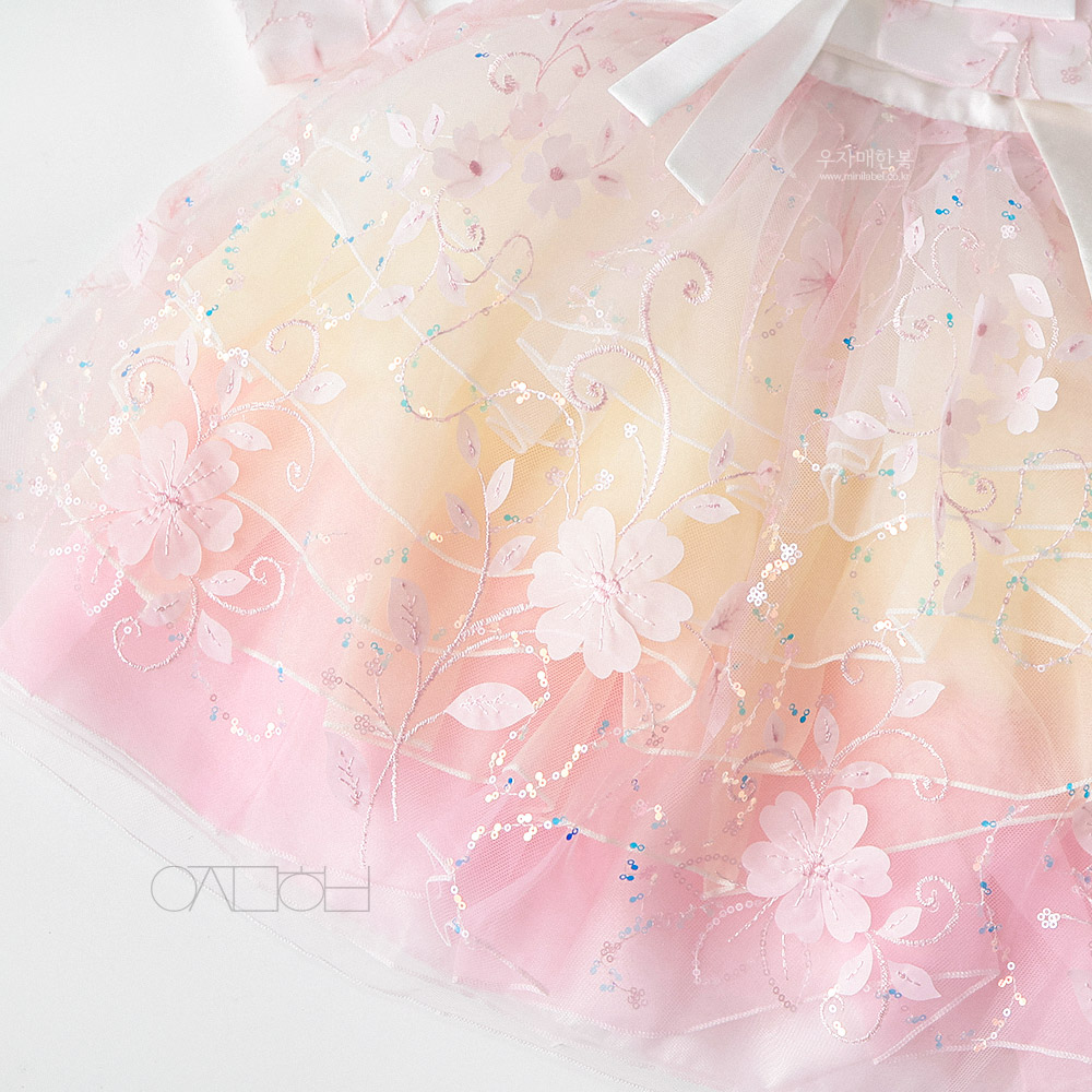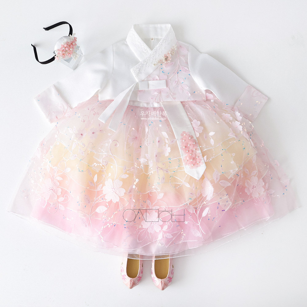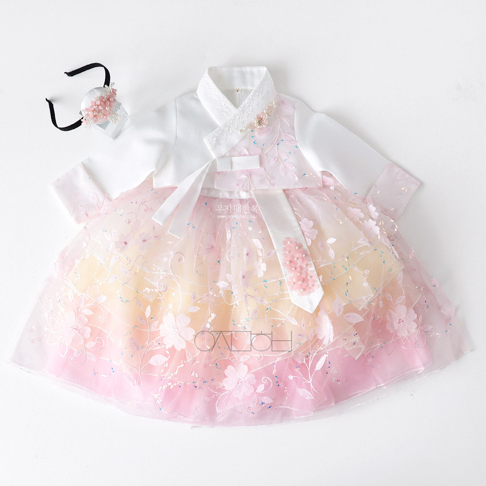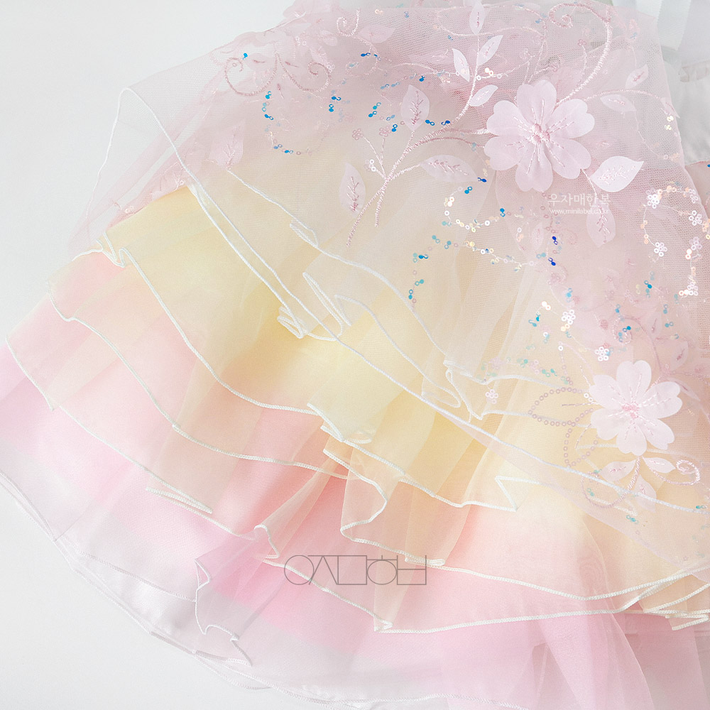 사랑스런 핑크 오로라빛으로 예쁜 공주 드레스한복입니다.