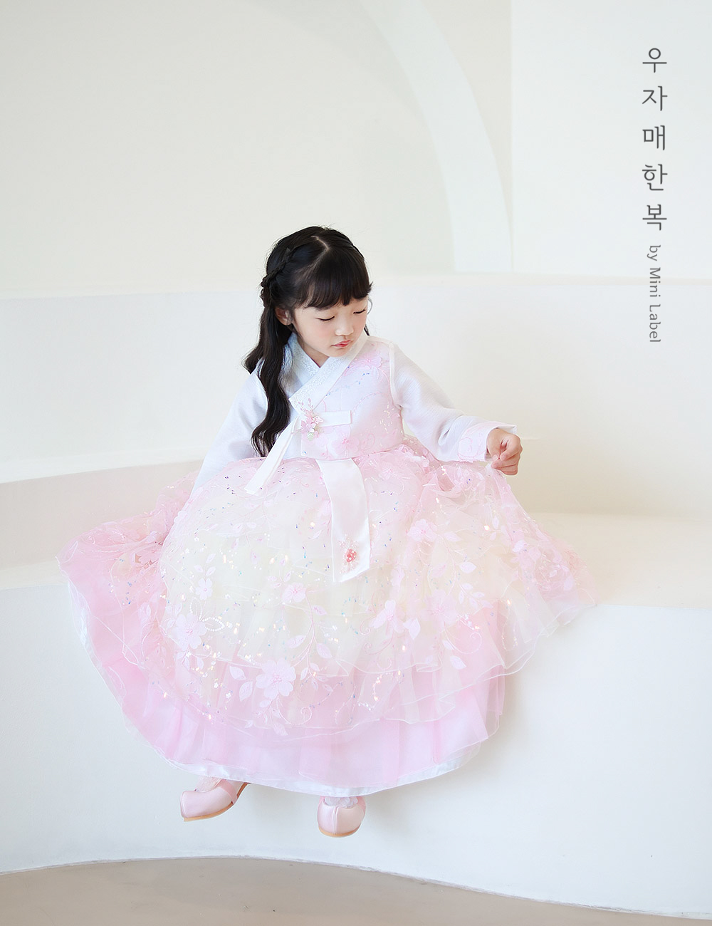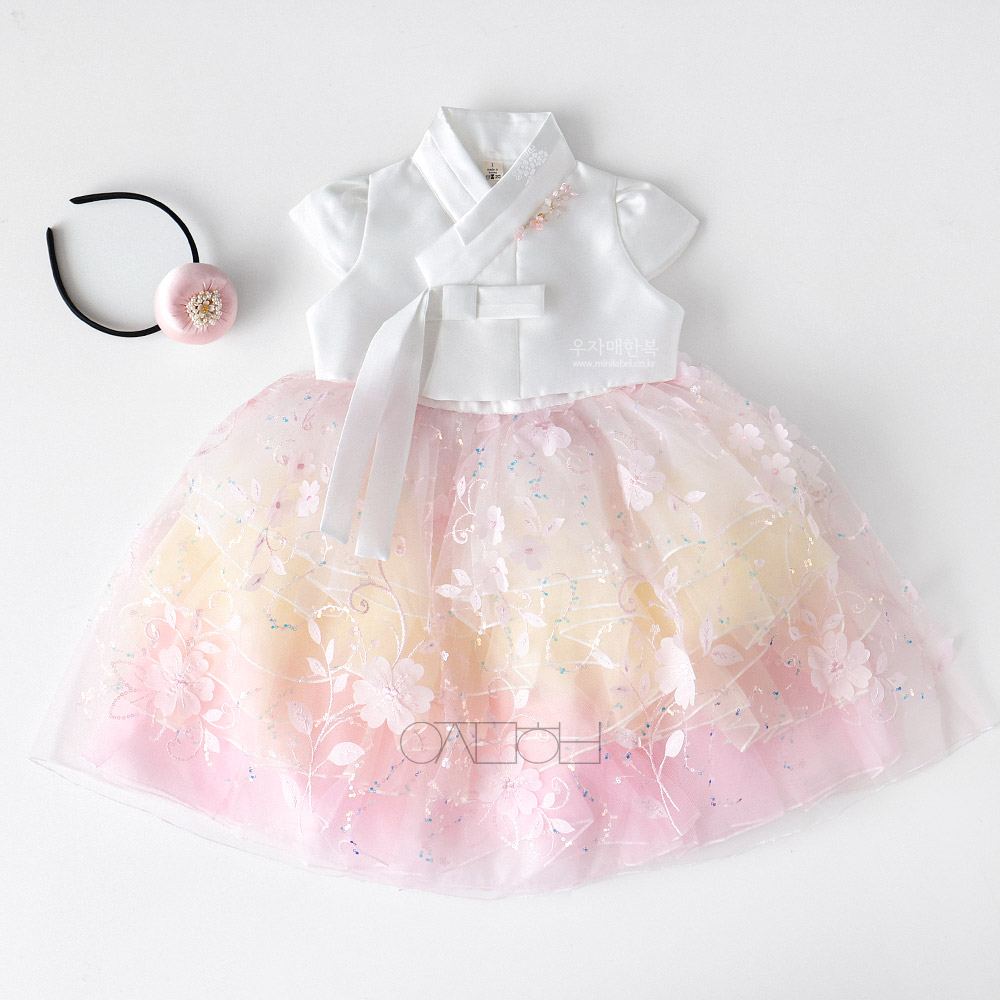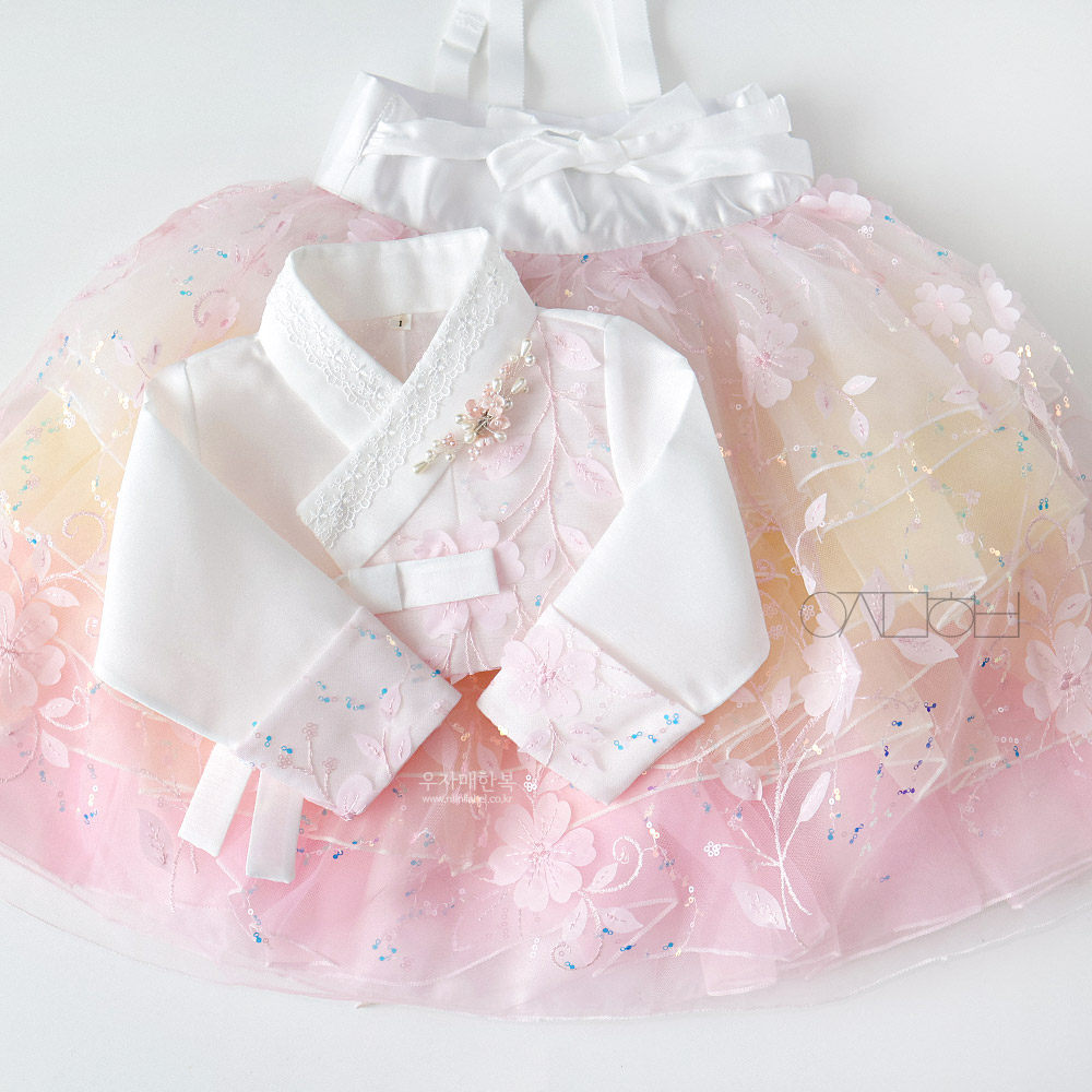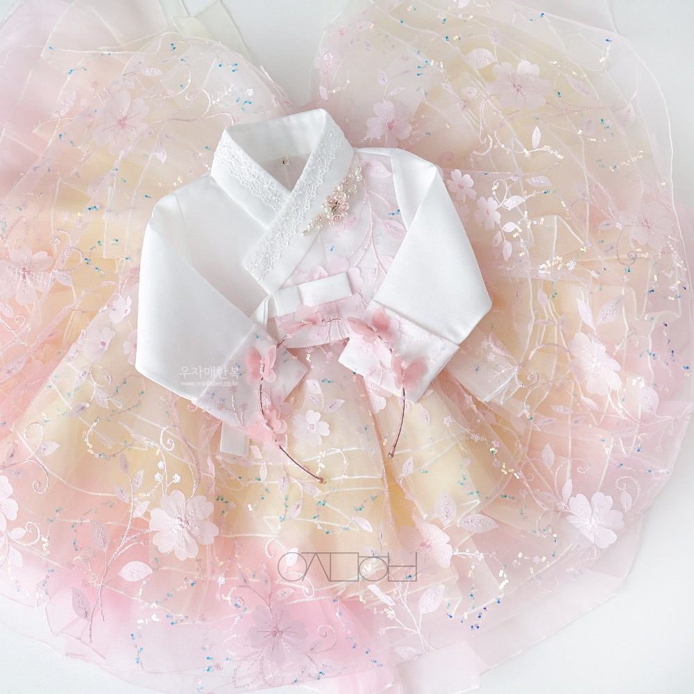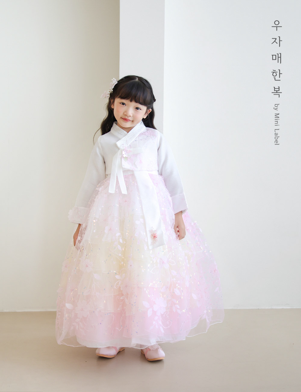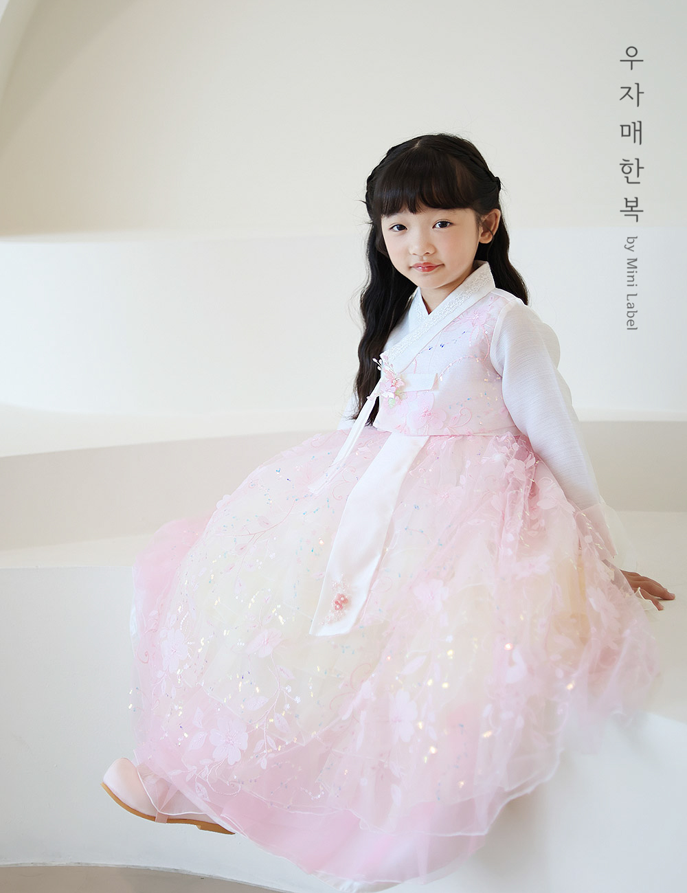 사랑스런 핑크 오로라빛으로 예쁜 공주 드레스한복입니다.