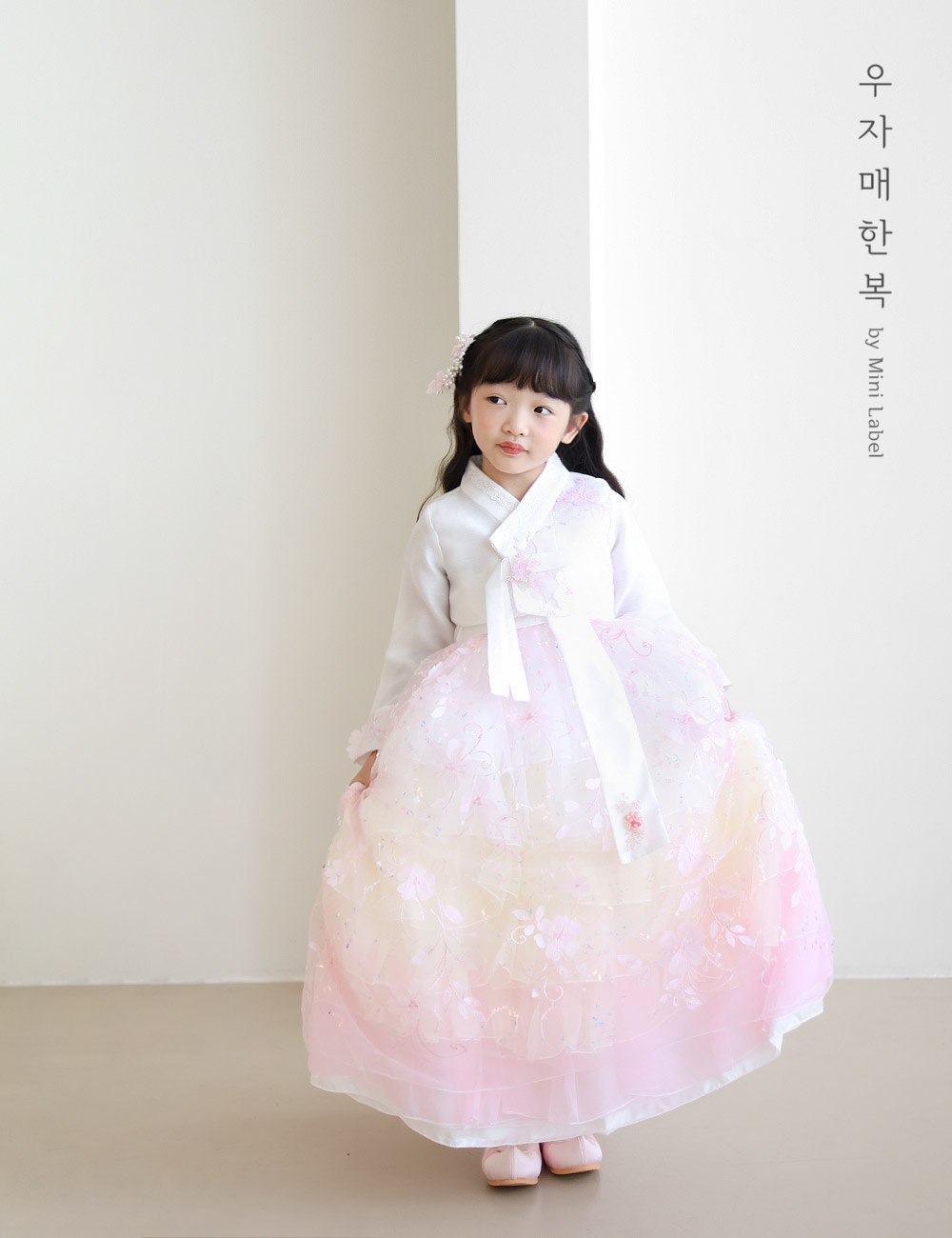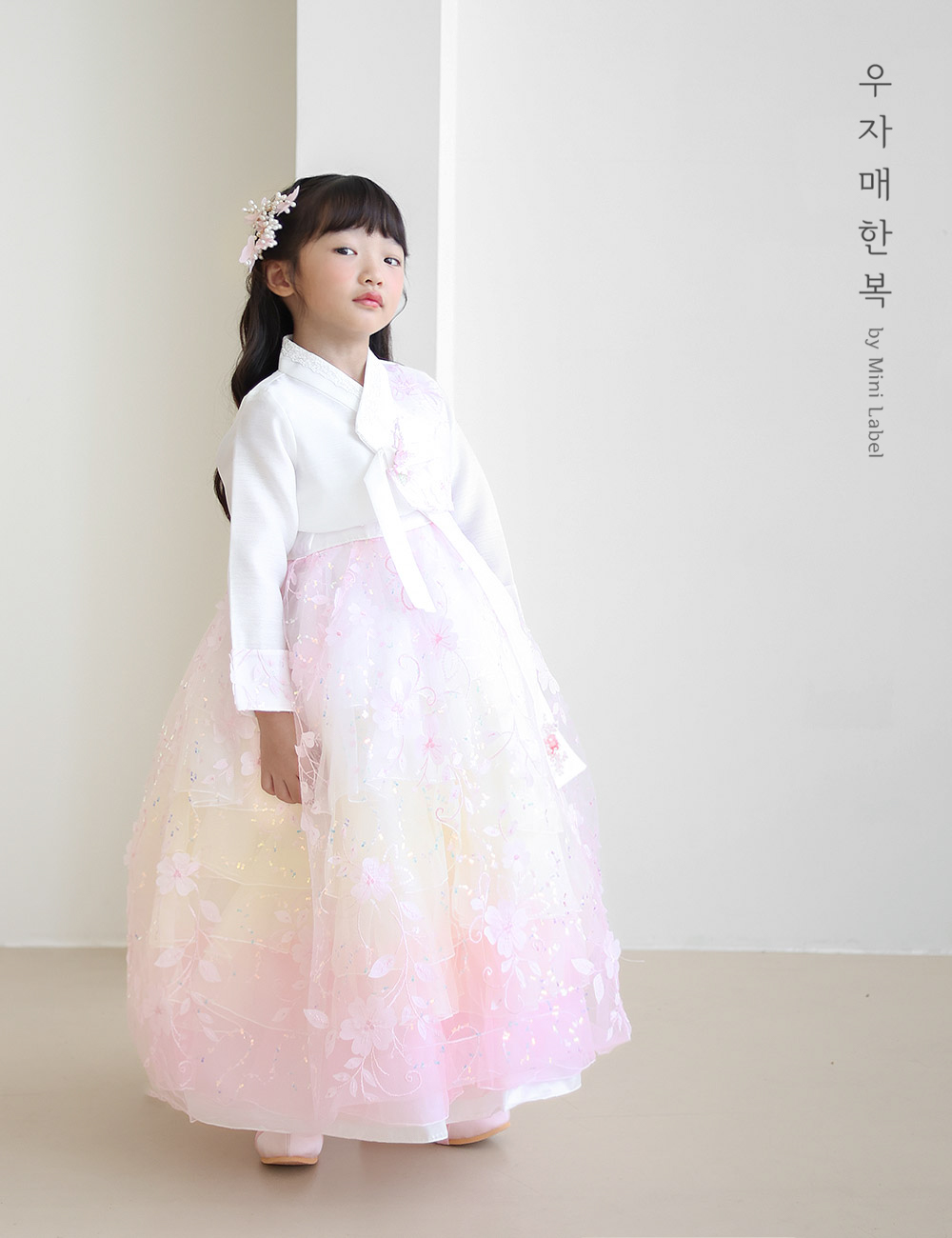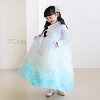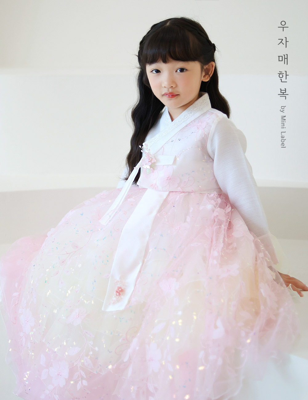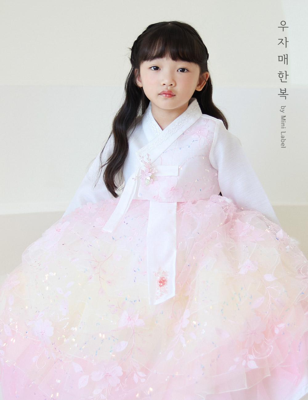 사랑스런 핑크 오로라빛으로 예쁜 공주 드레스한복입니다.