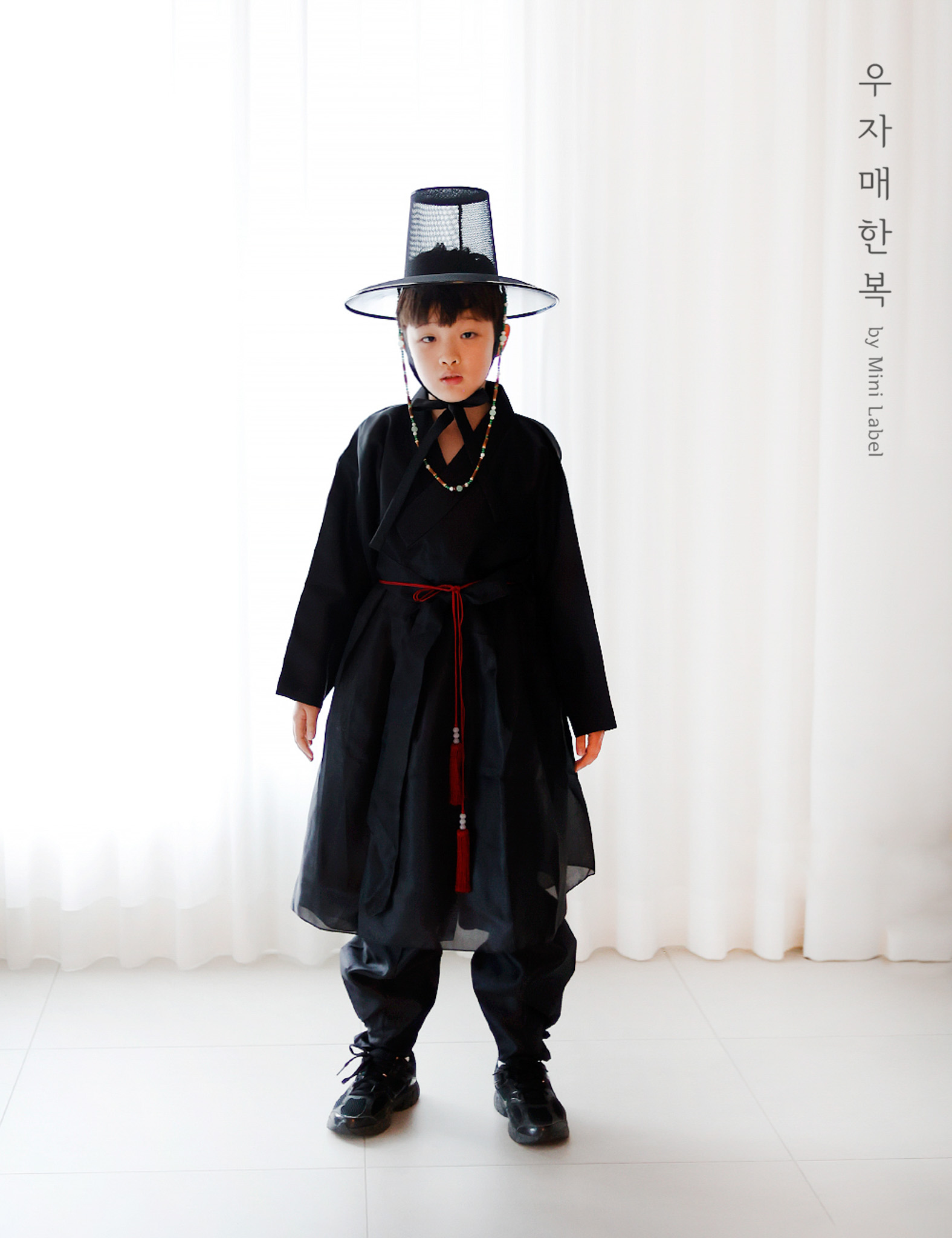 요즘 가장 핫한 사자보이즈 검정 남아한복입니다.