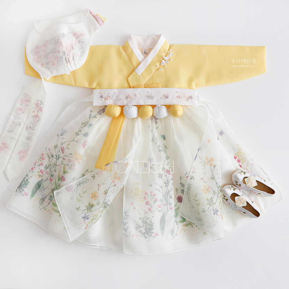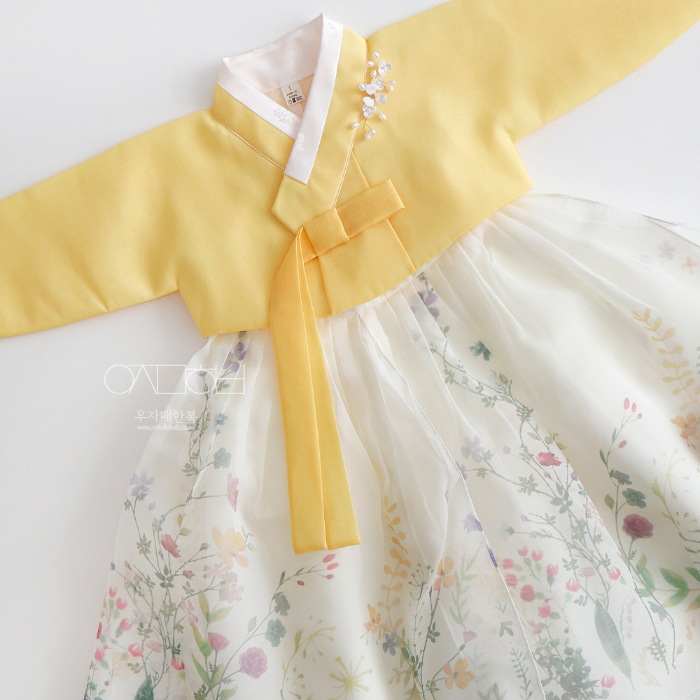 봄처럼 예쁜 꽃프린트가 사랑스러운 여아한복입니다.