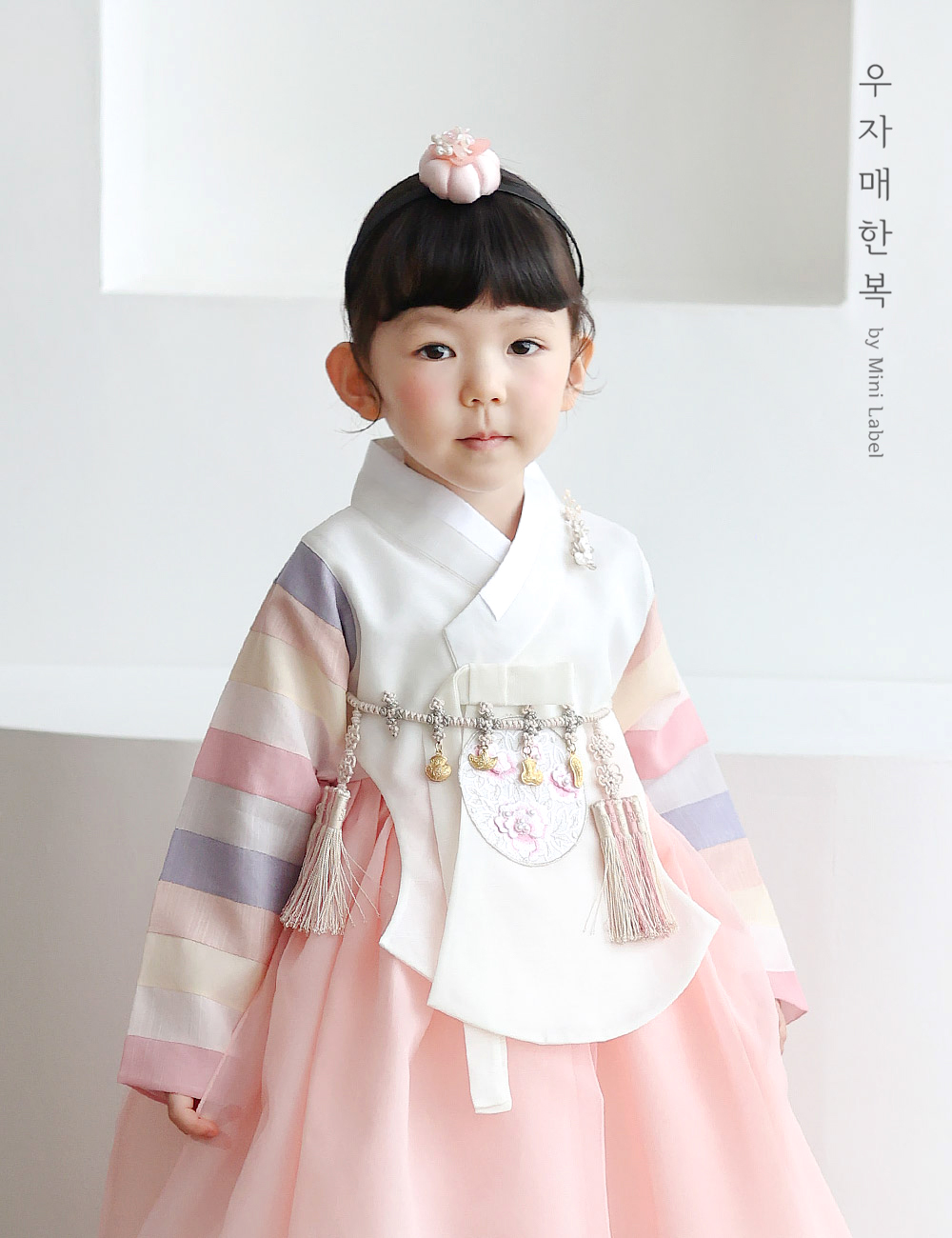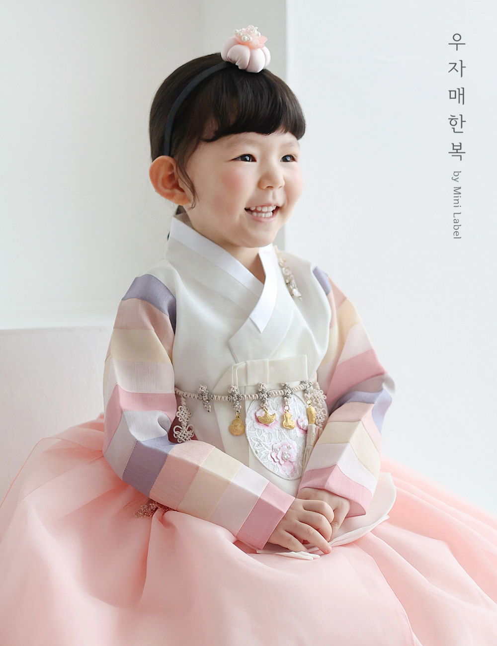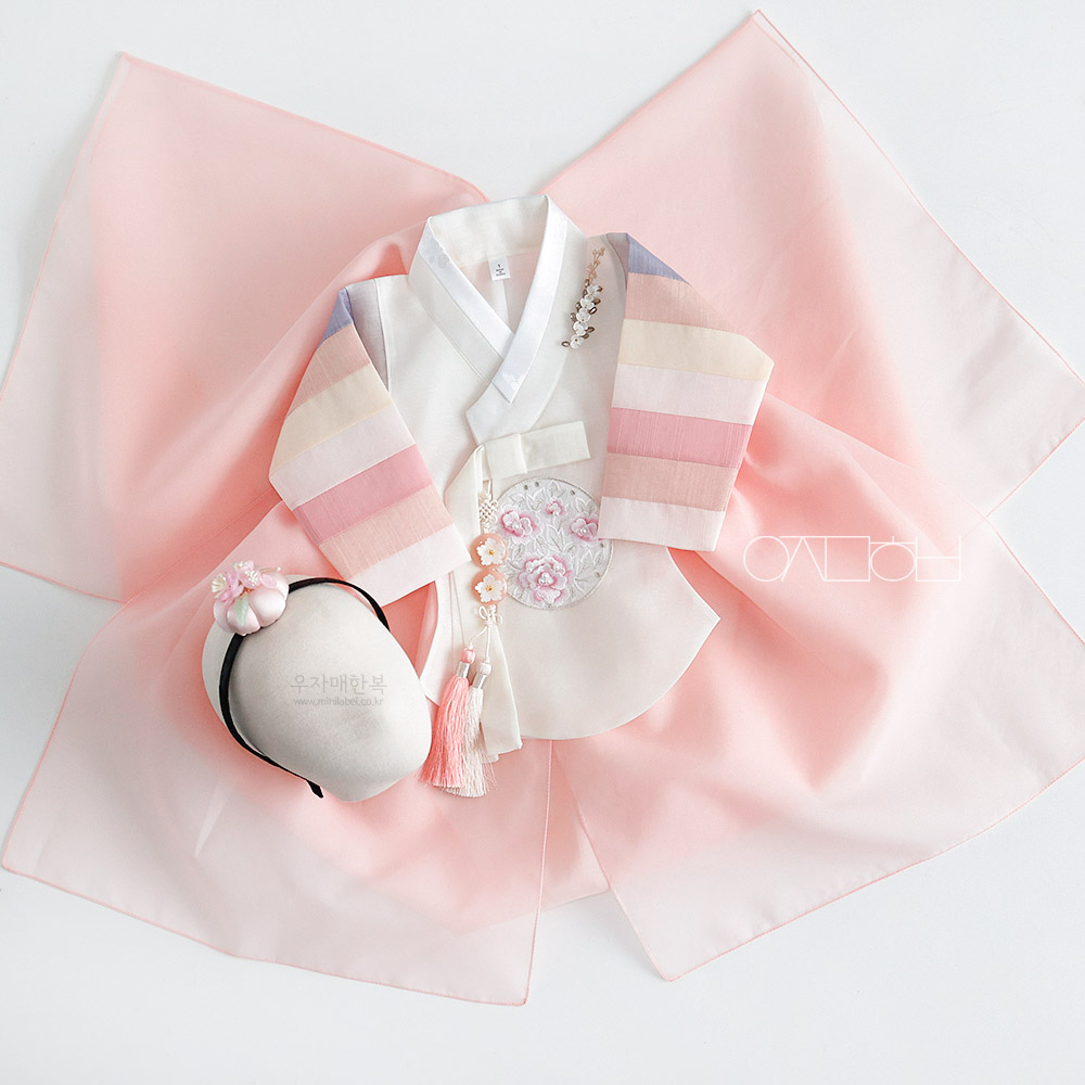 수희 아이보리 오방 아기 매듭 돌띠