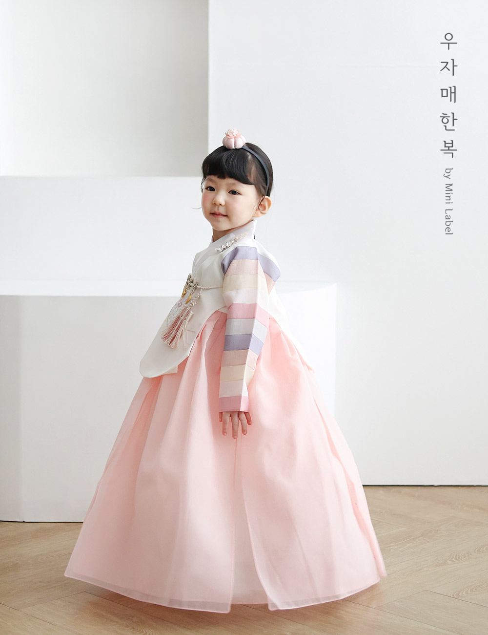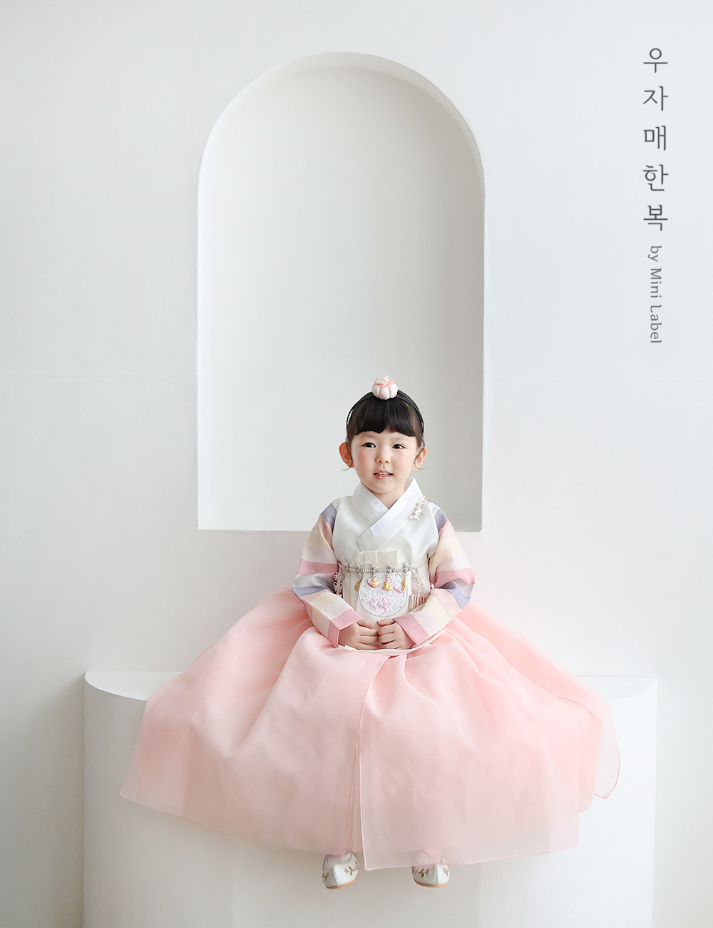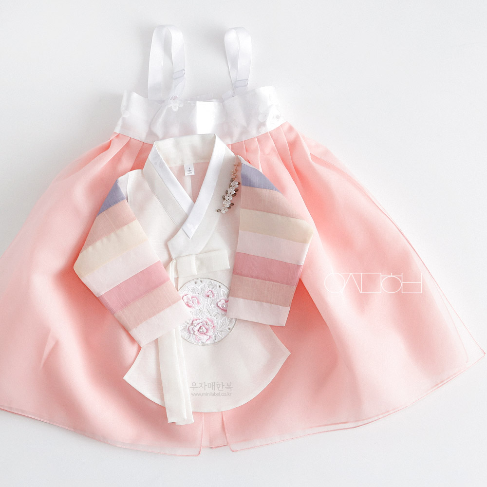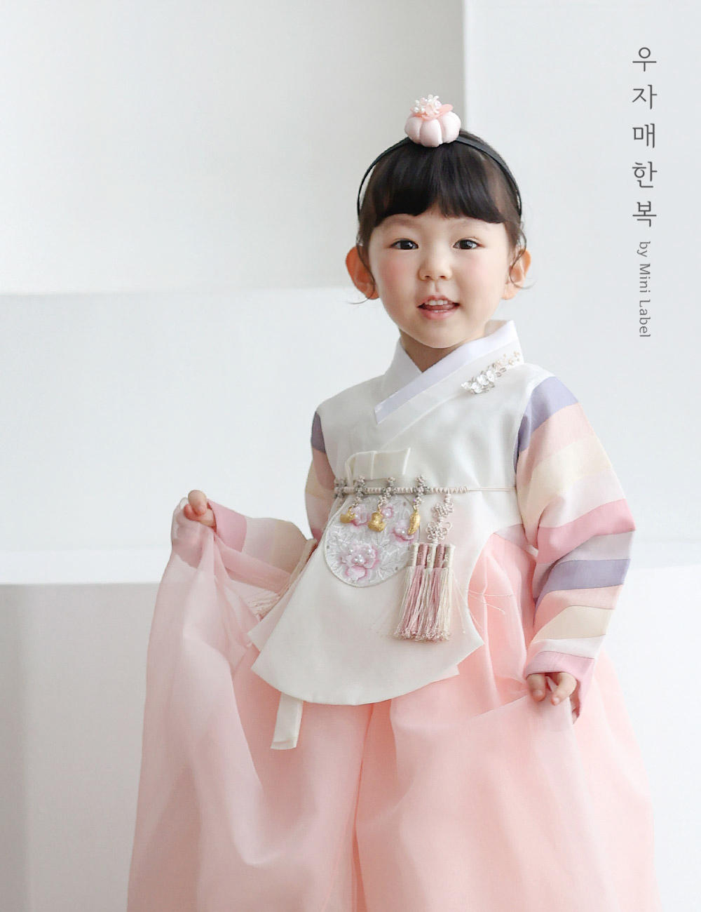수희 아이보리 오방 아기 매듭 돌띠