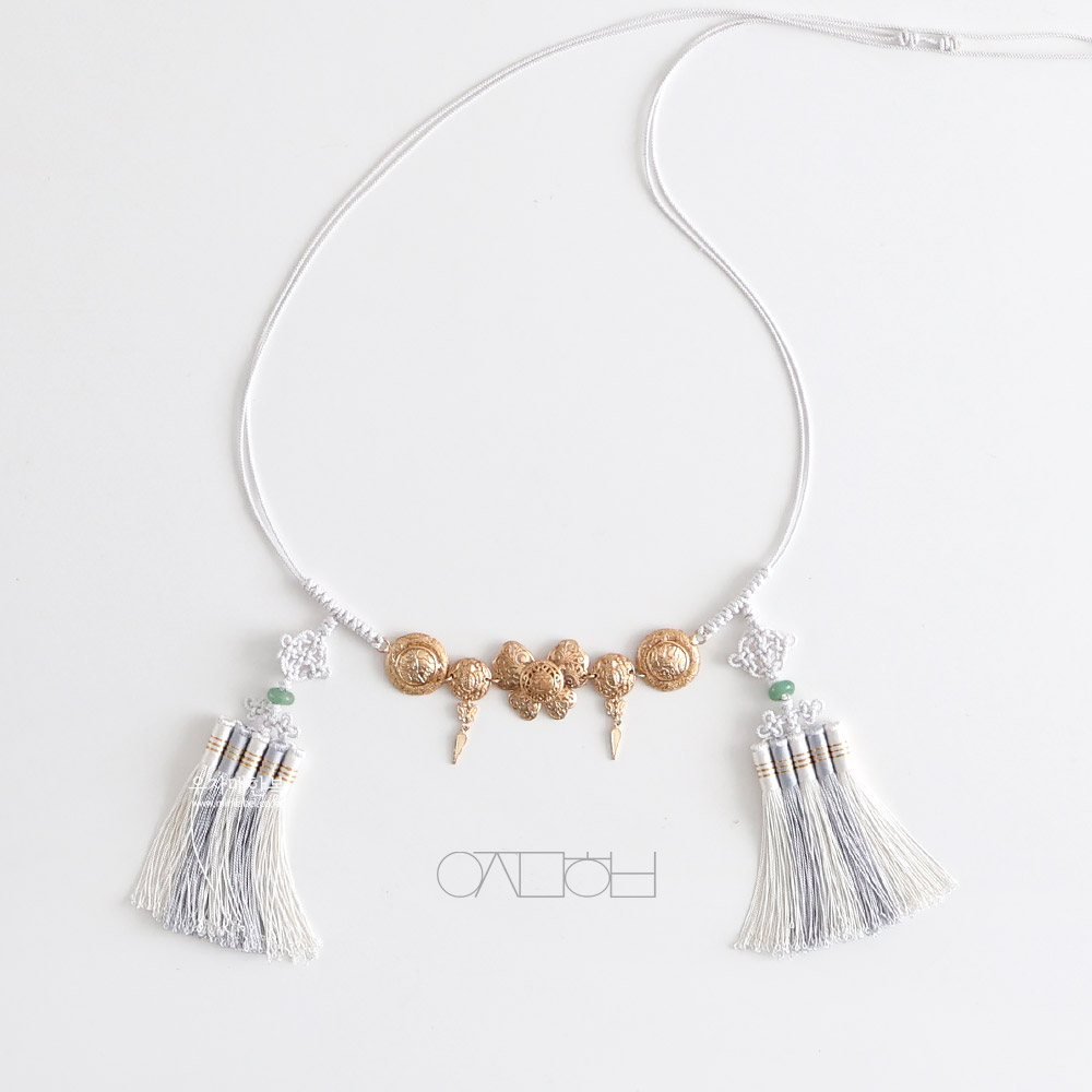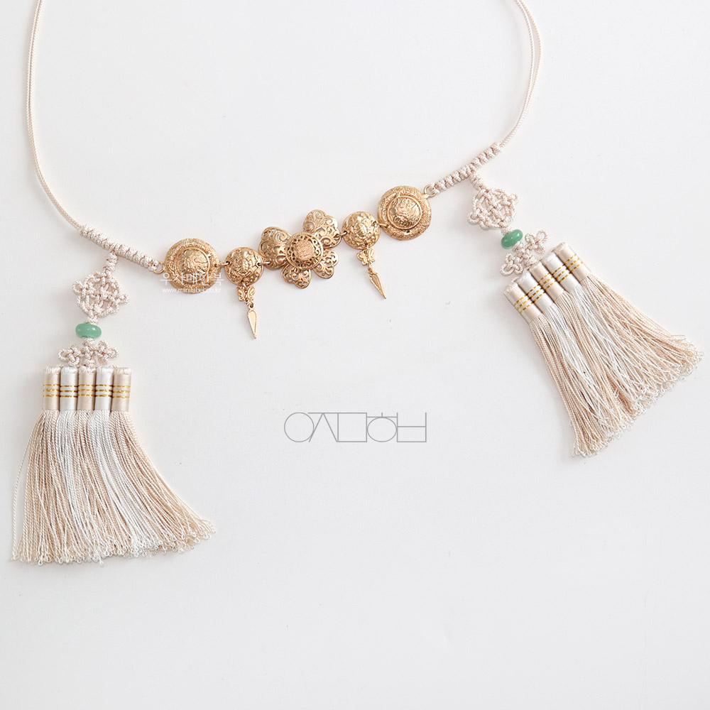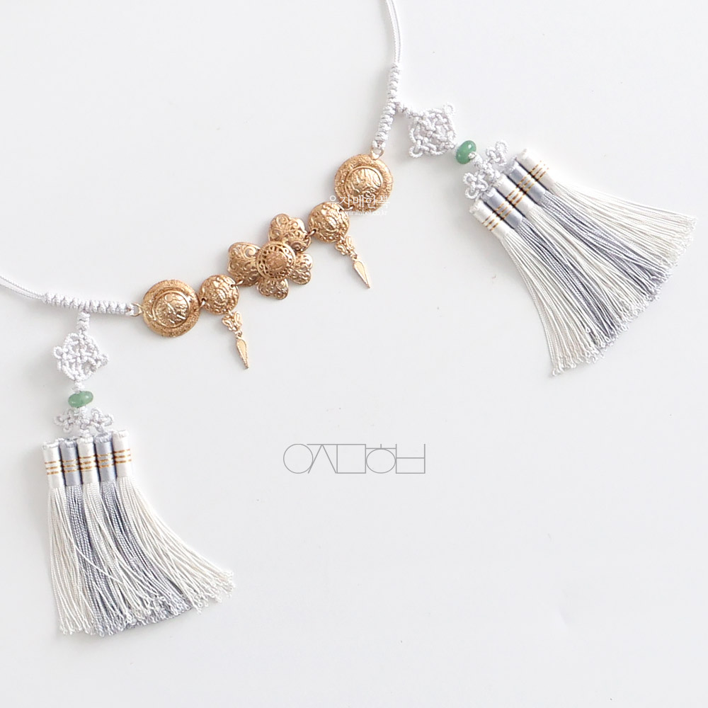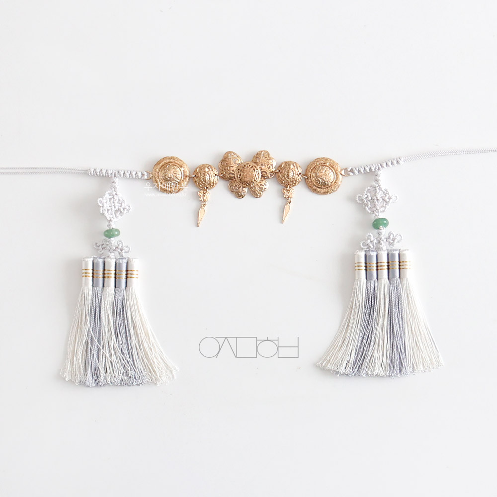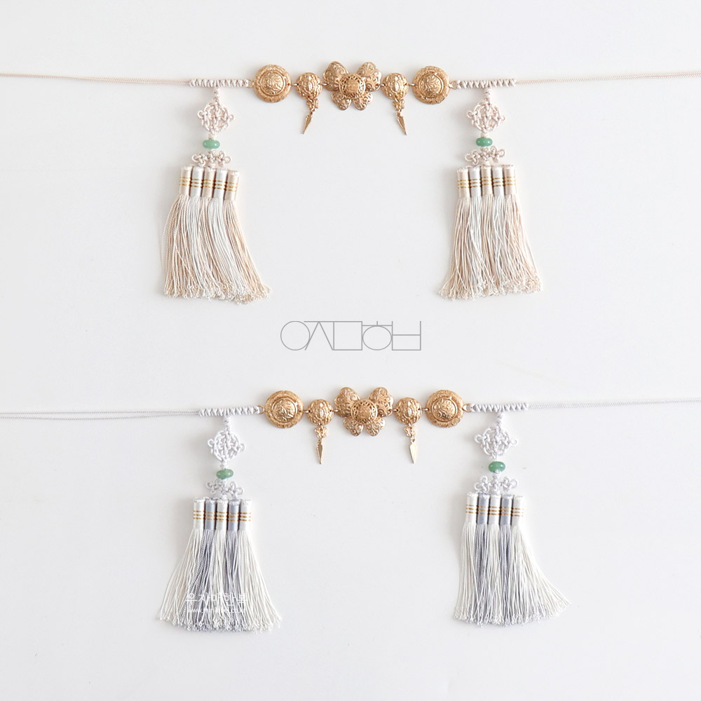 나비 모양의 금속장식이 포인트로 들어간 매듭띠입니다.