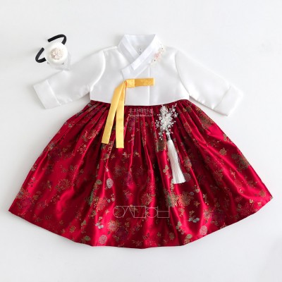 청아름 레드 양단 고급 여아한복 추석 설빔 아기