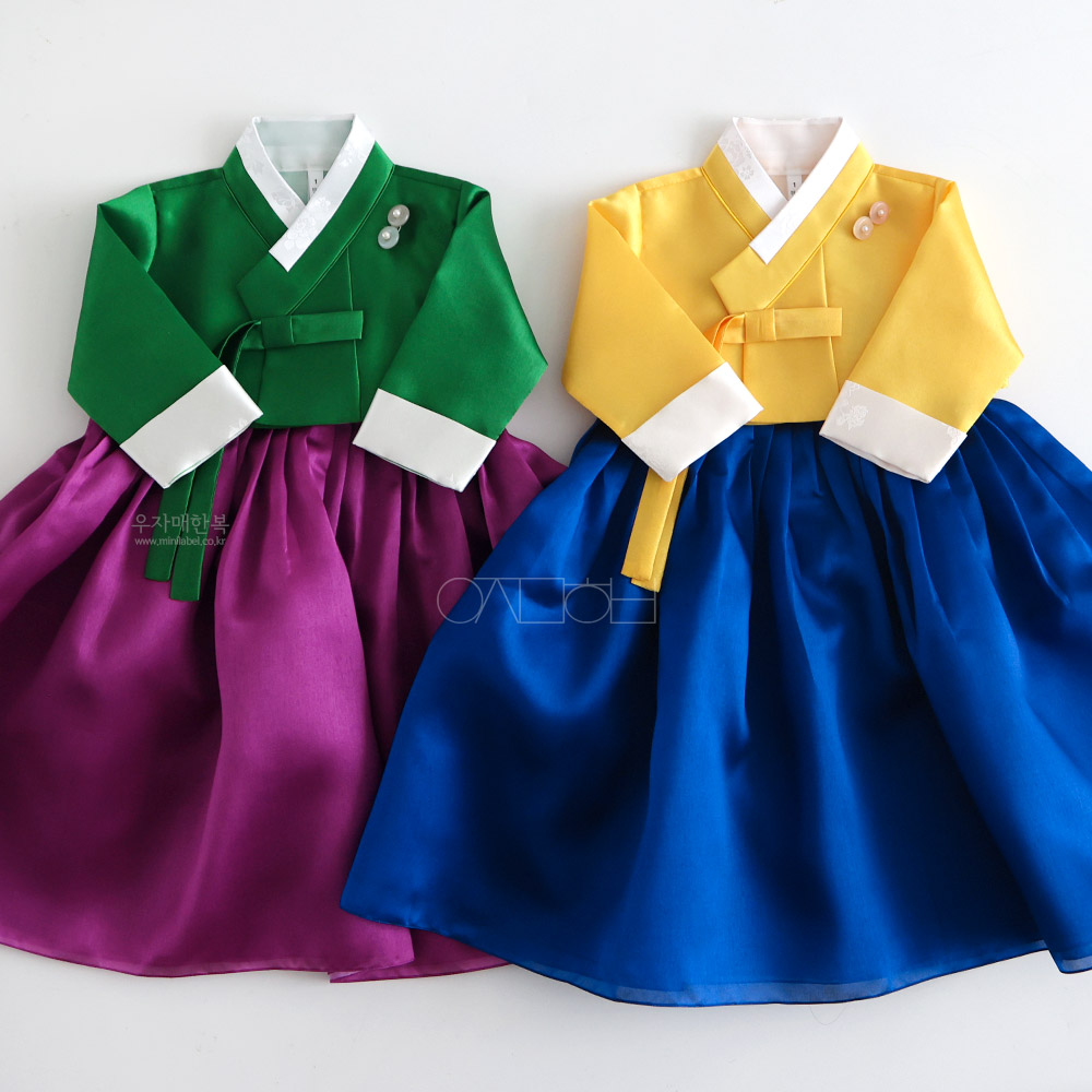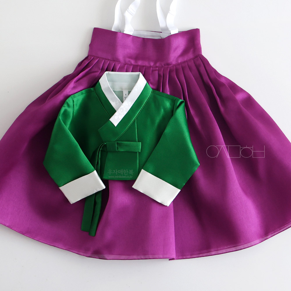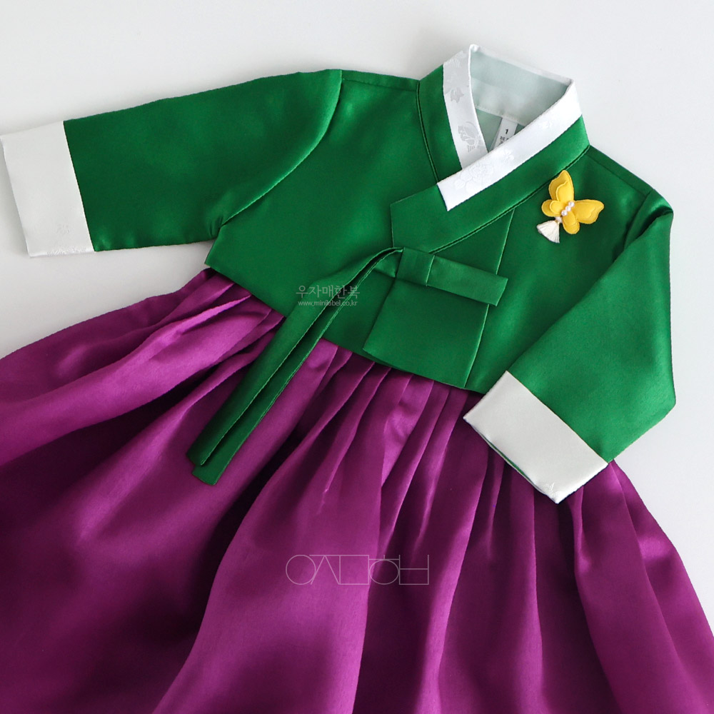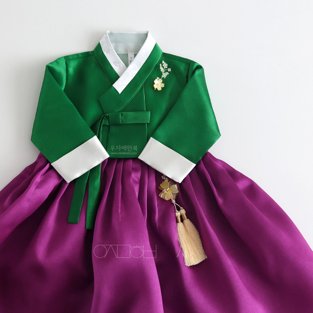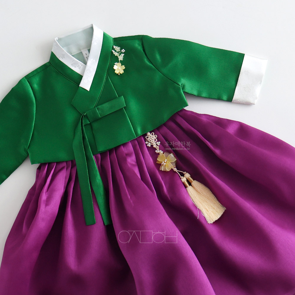 은은한 광택이 도는 고급원단으로 제작된 여아한복입니다.