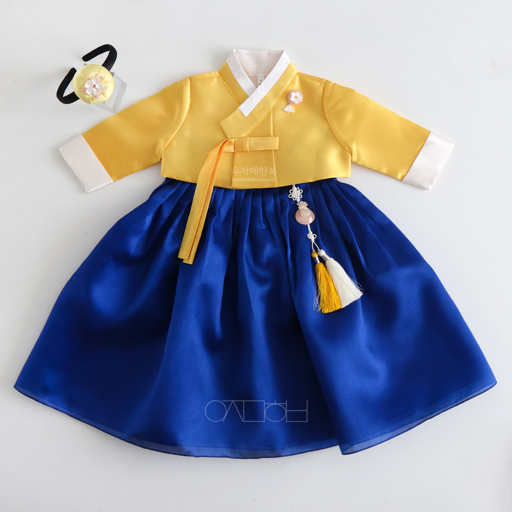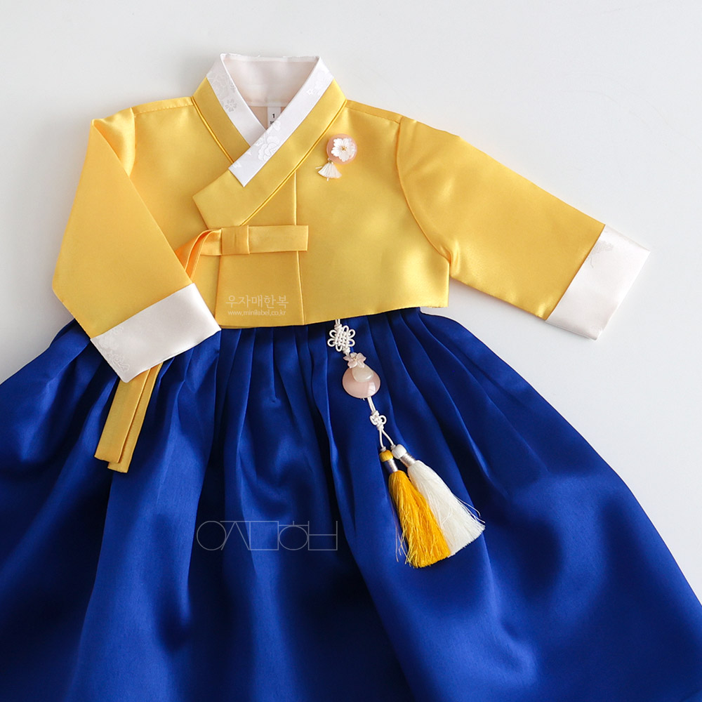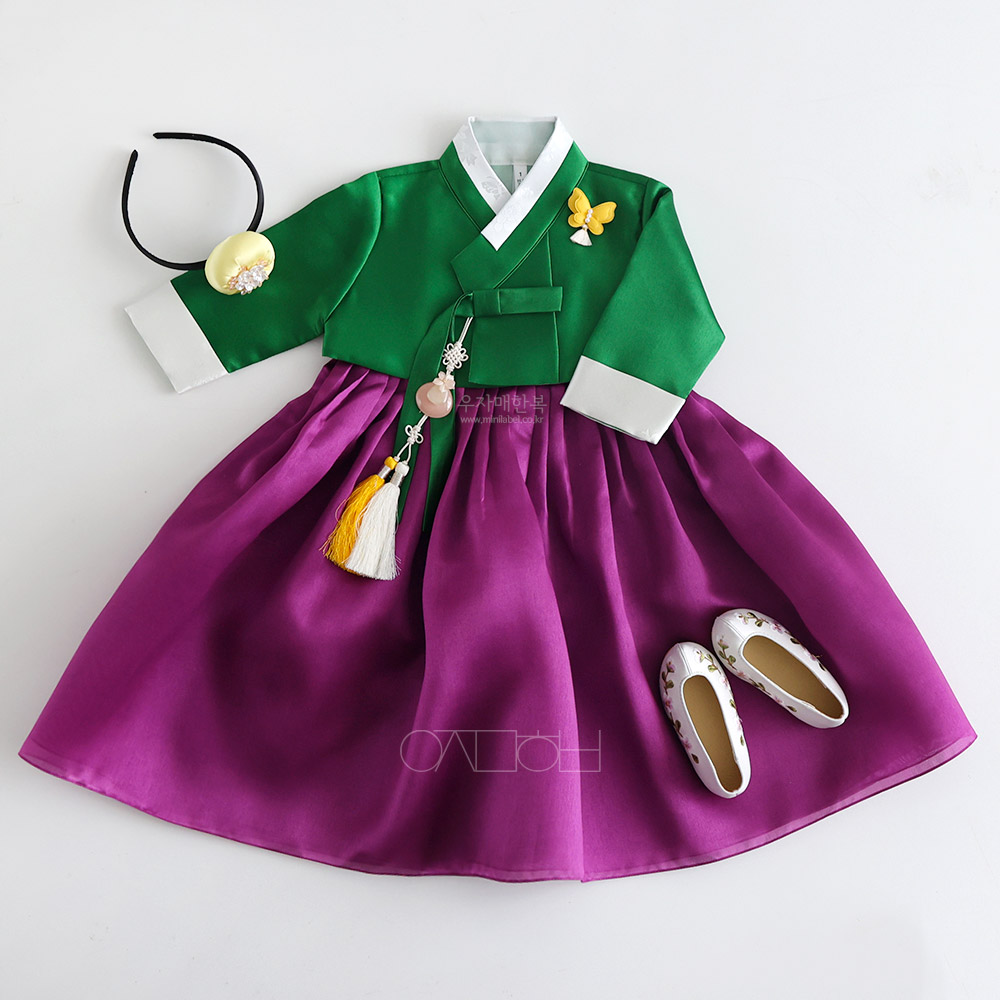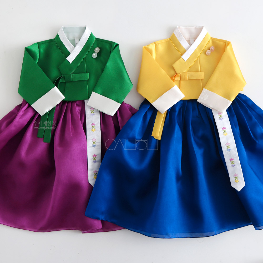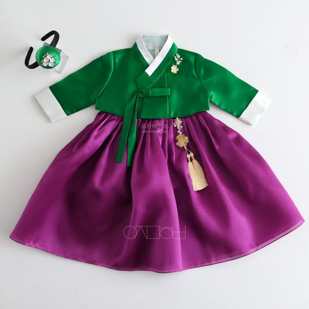 은은한 광택이 도는 고급원단으로 제작된 여아한복입니다.