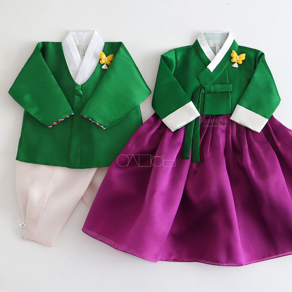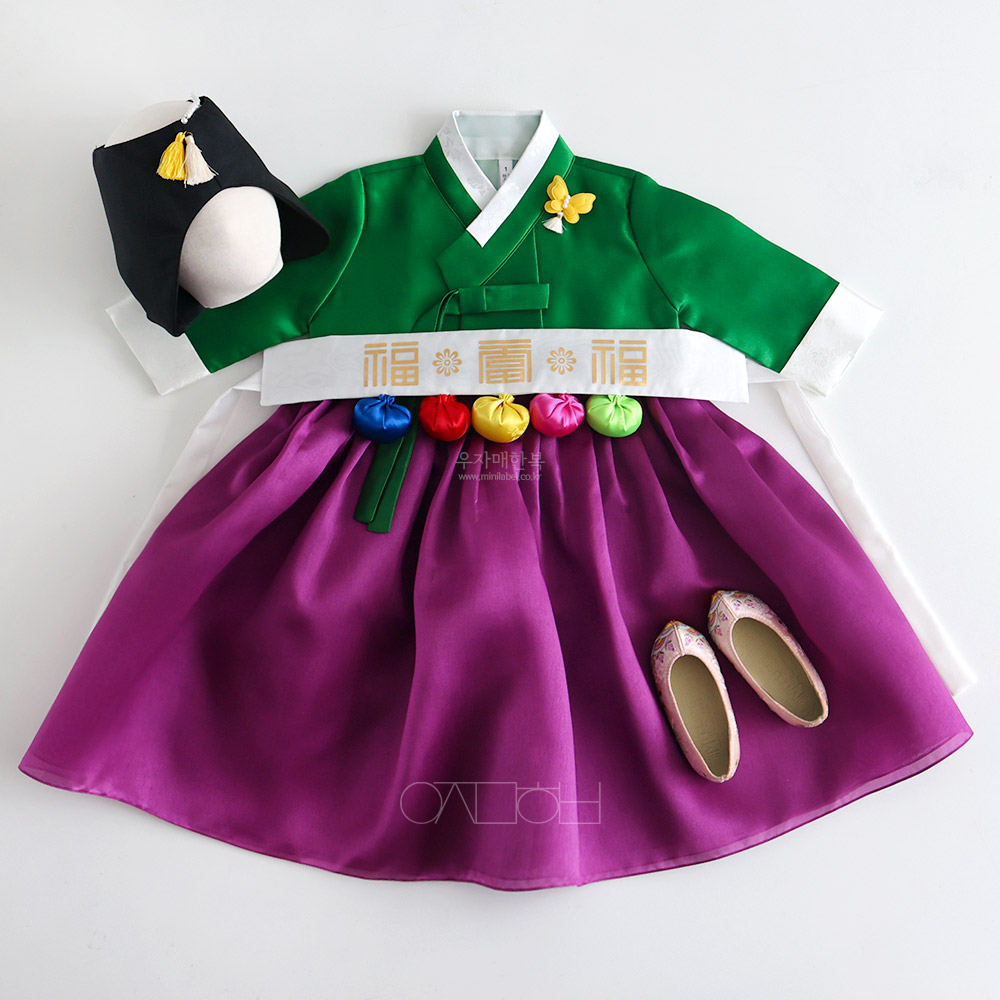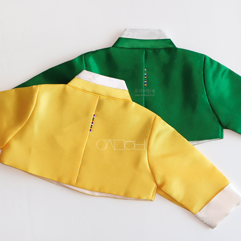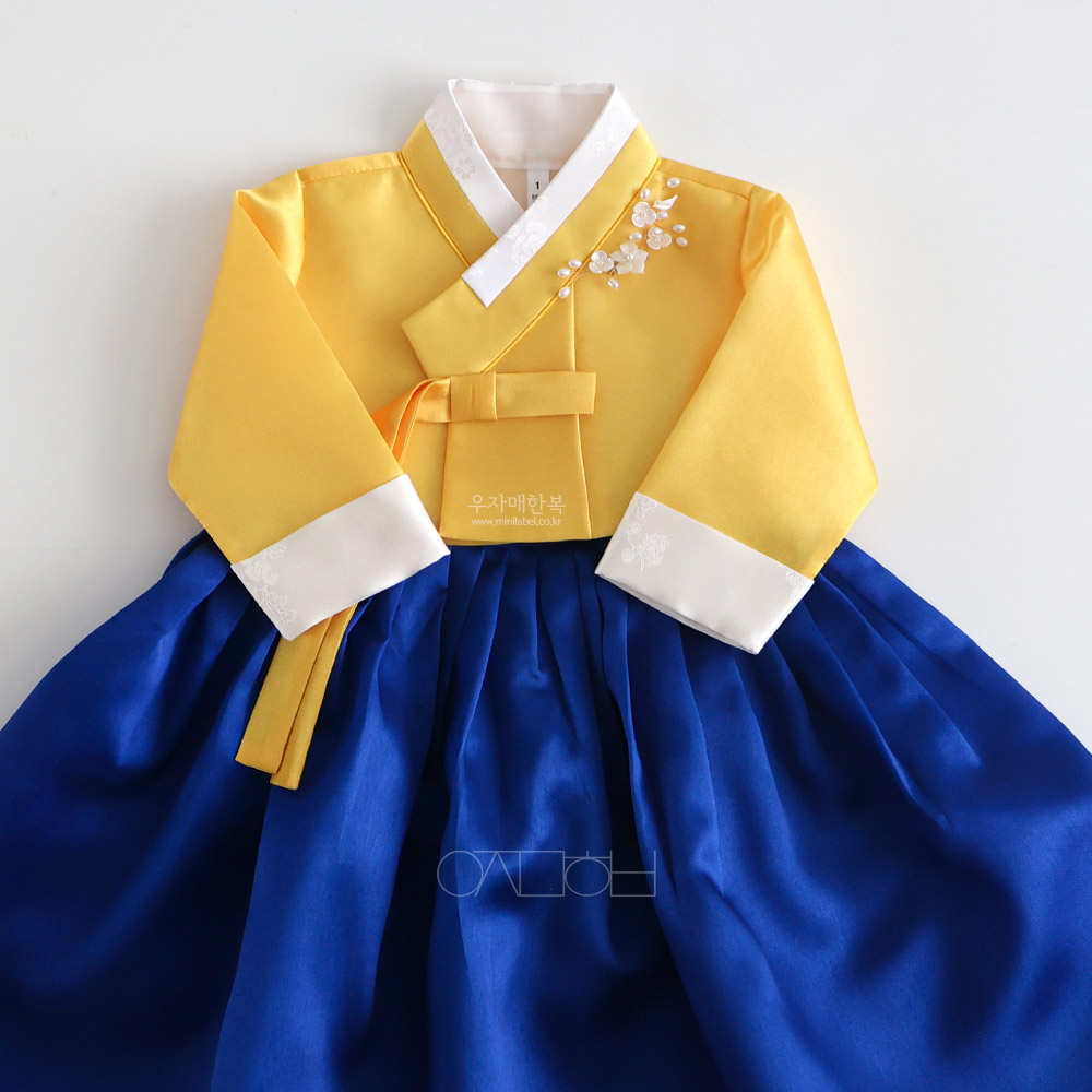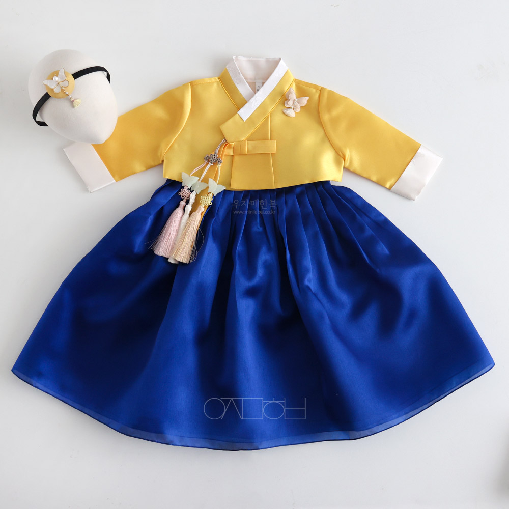 은은한 광택이 도는 고급원단으로 제작된 여아한복입니다.