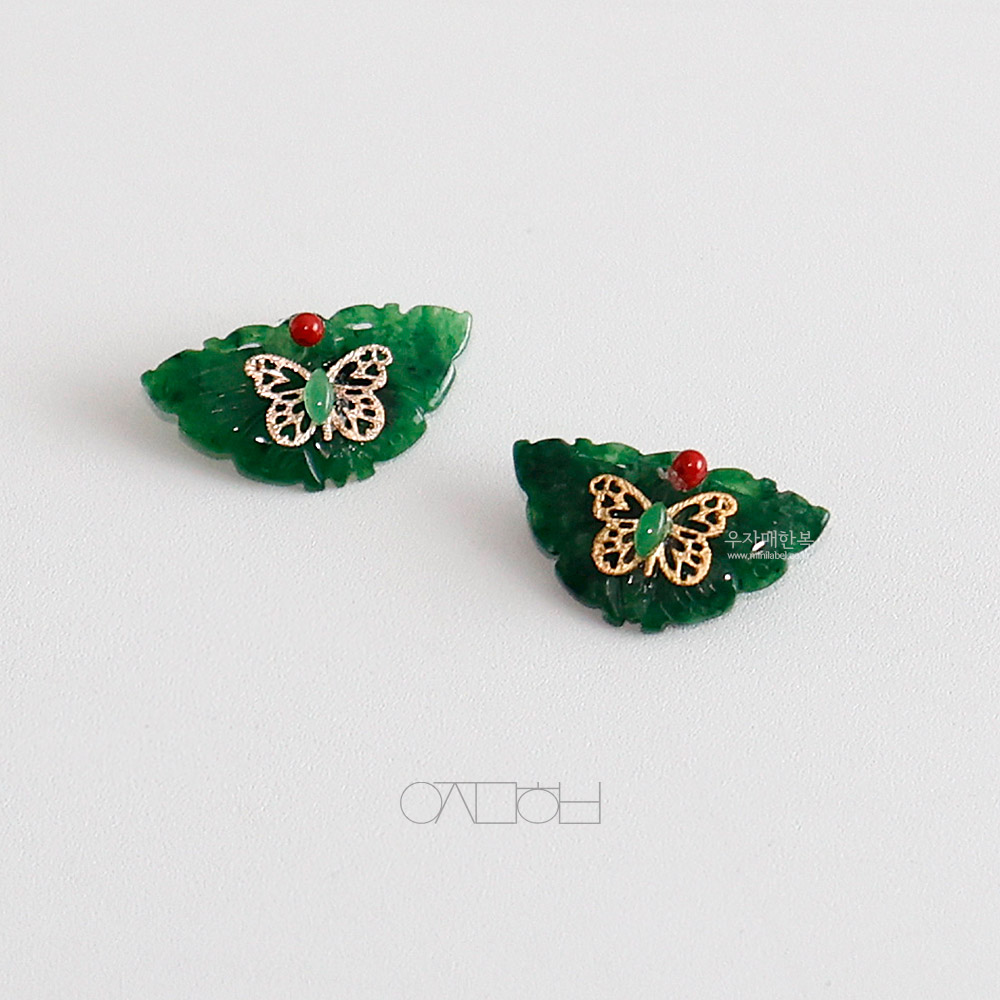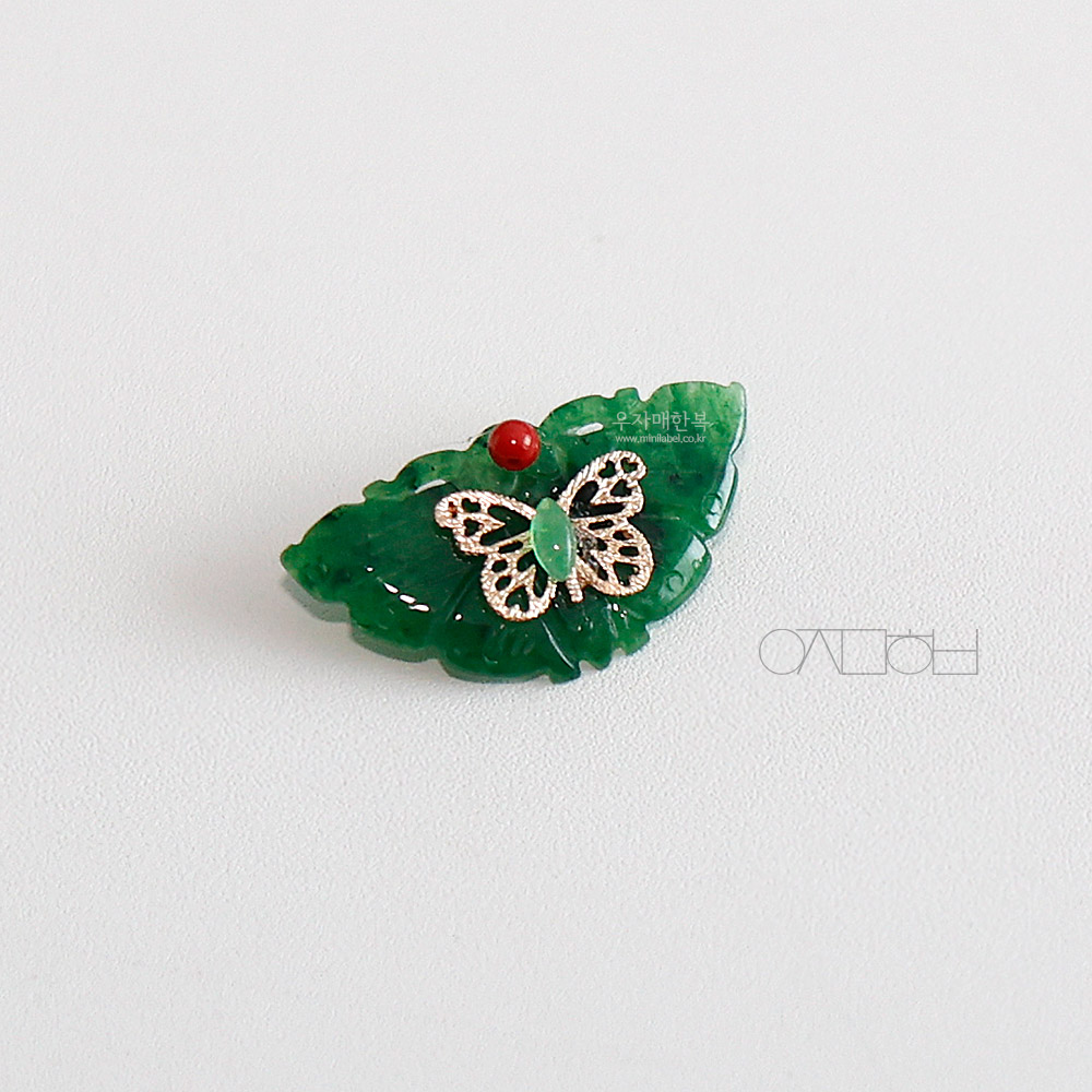 천연 나비모양의 비취옥으로 만든 미니 브로치 입니다.