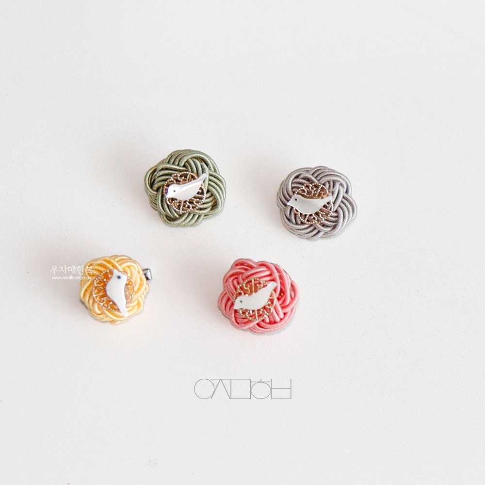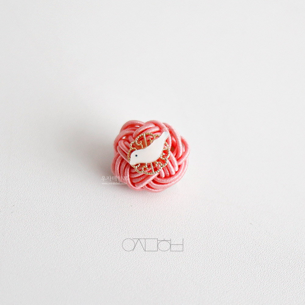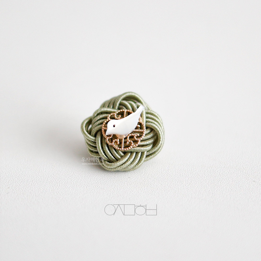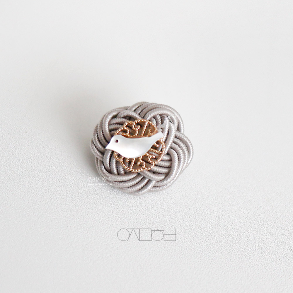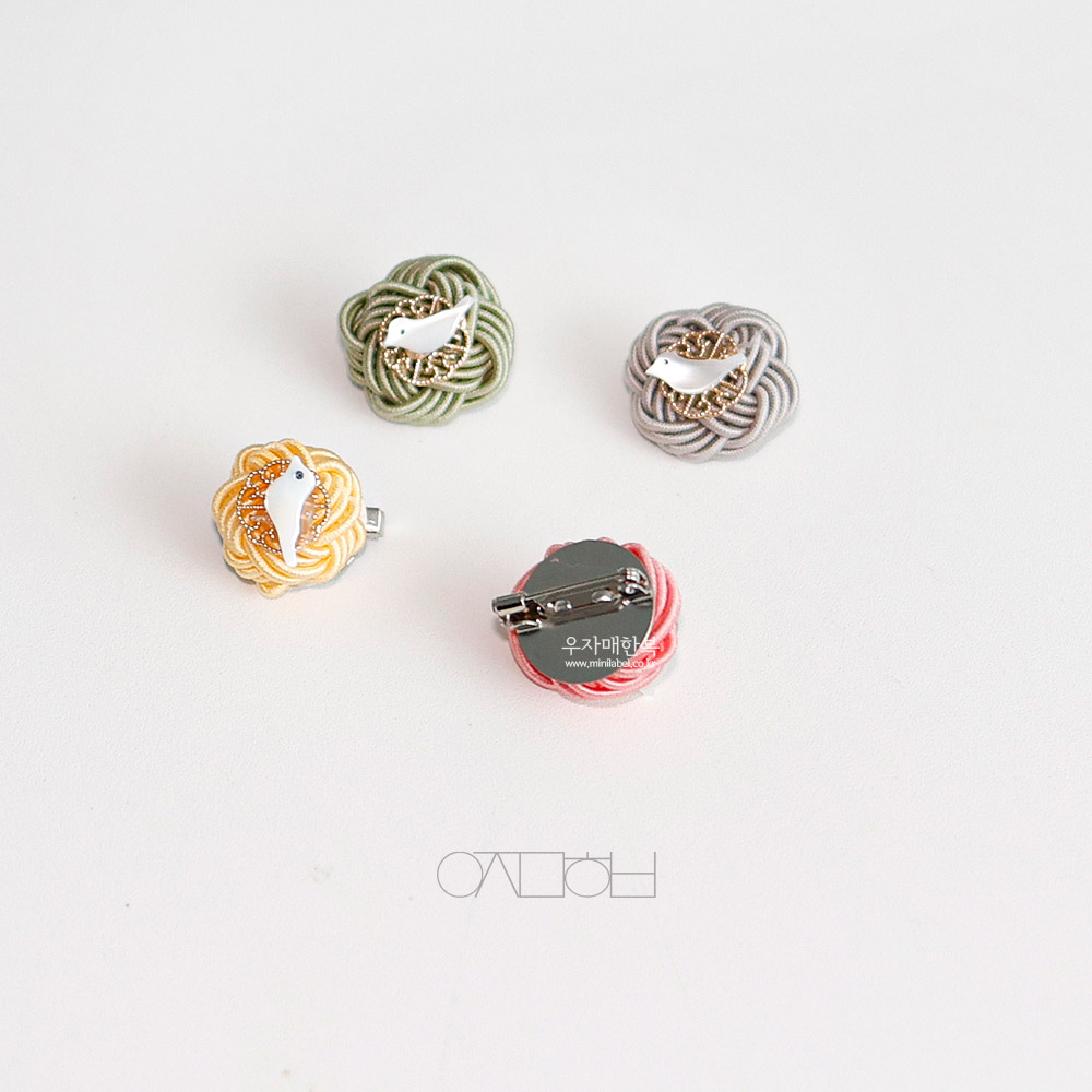 전통 매듭위에 자개 새 모양으로 장신한 미니 브로치입니다.