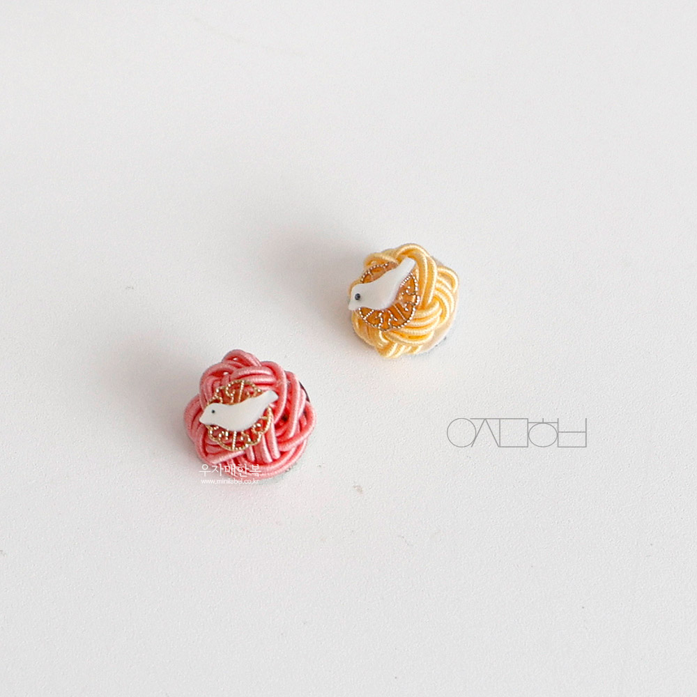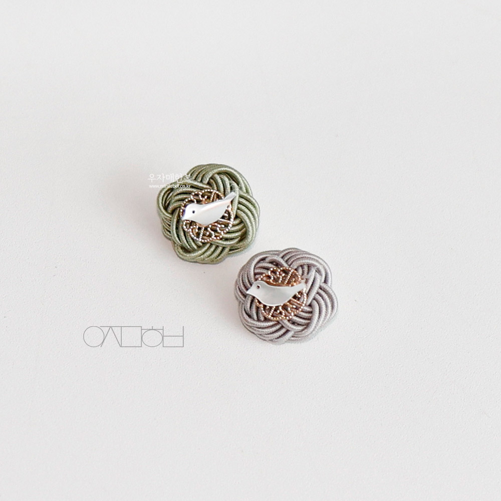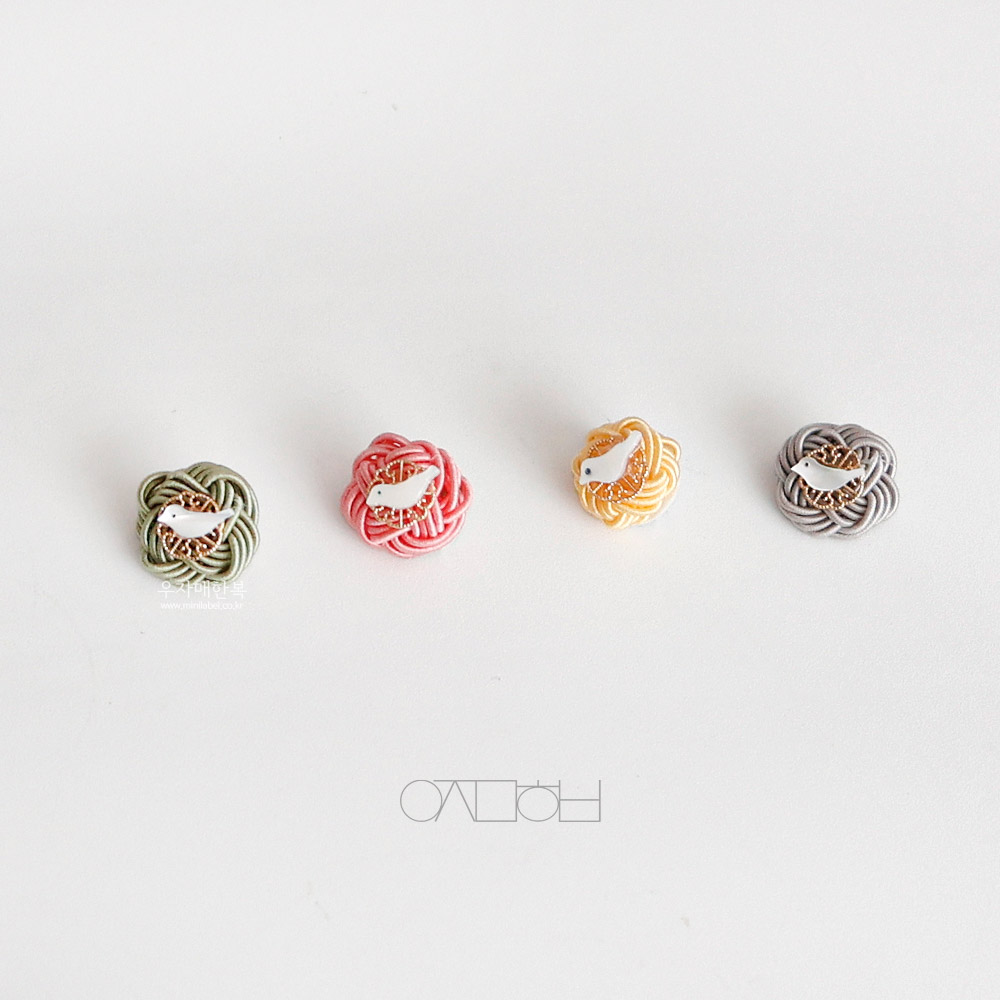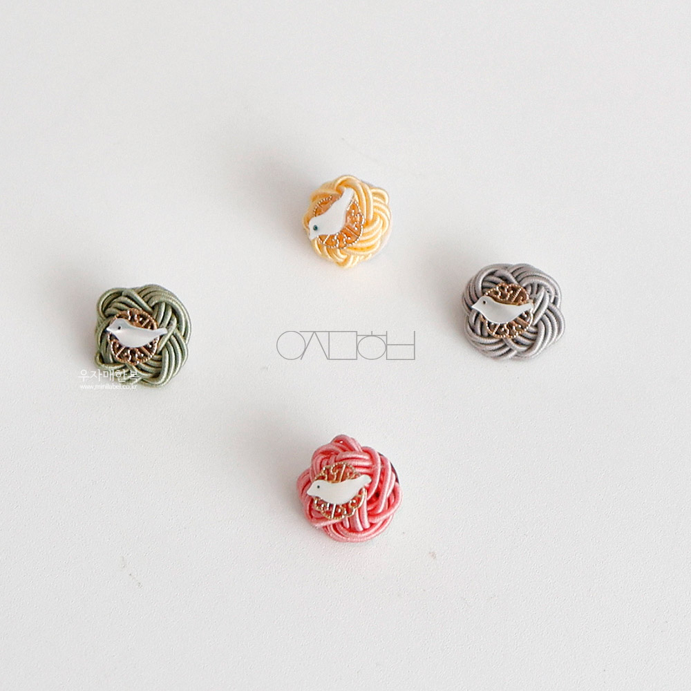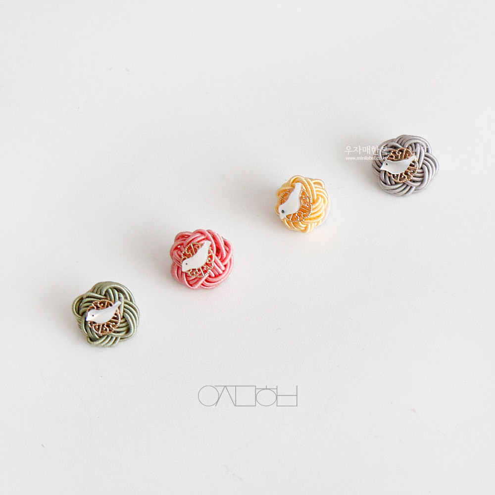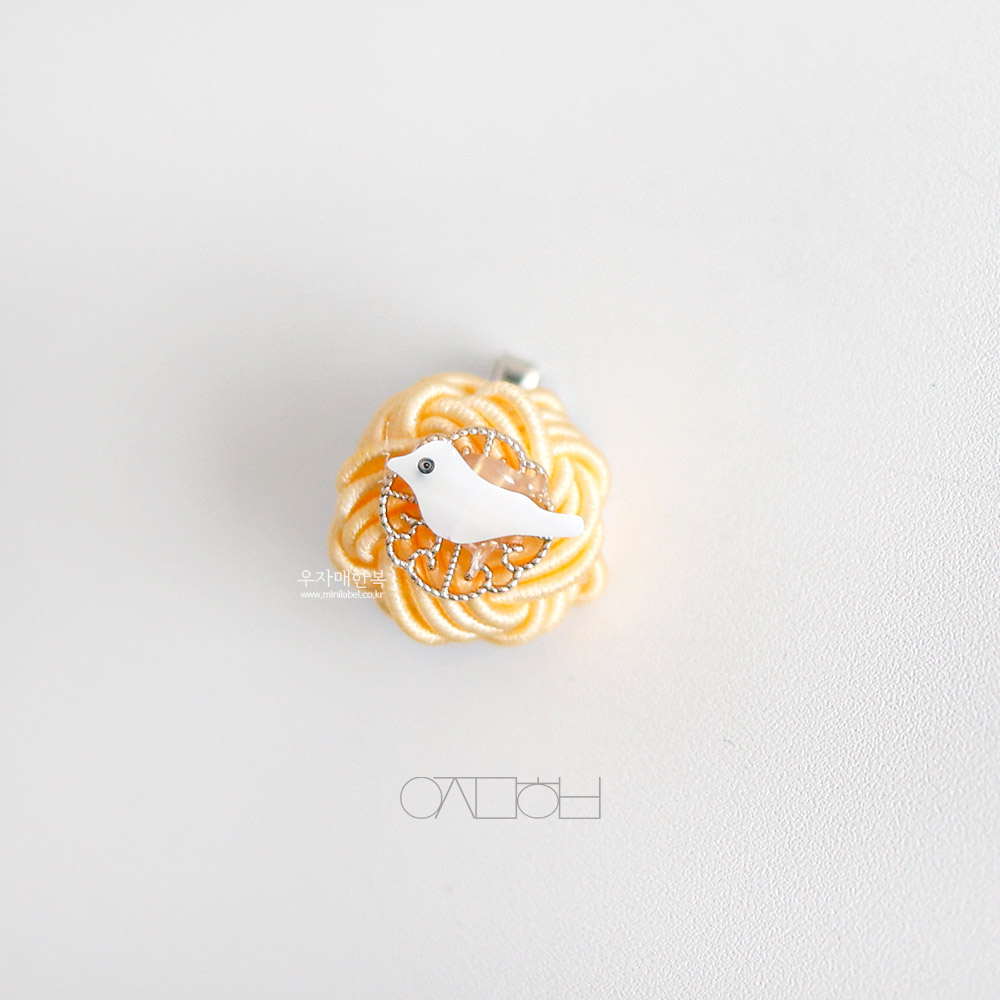 전통 매듭위에 자개 새 모양으로 장신한 미니 브로치입니다.