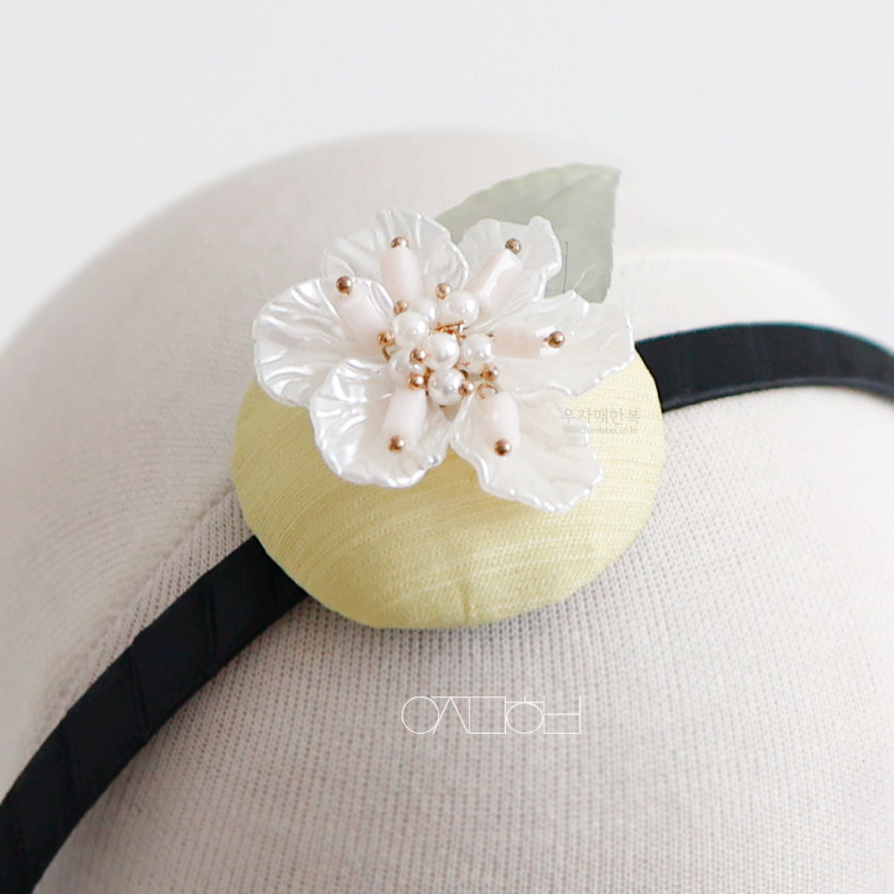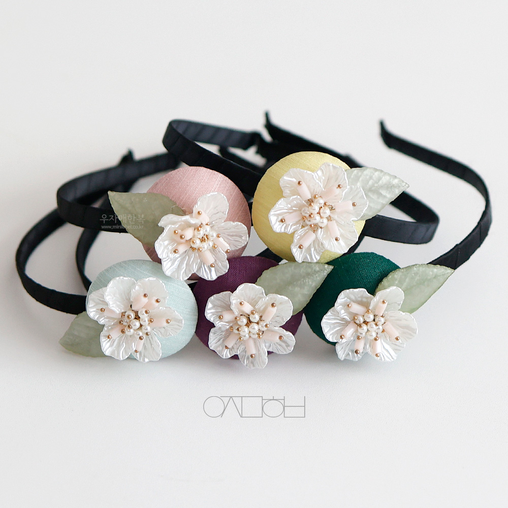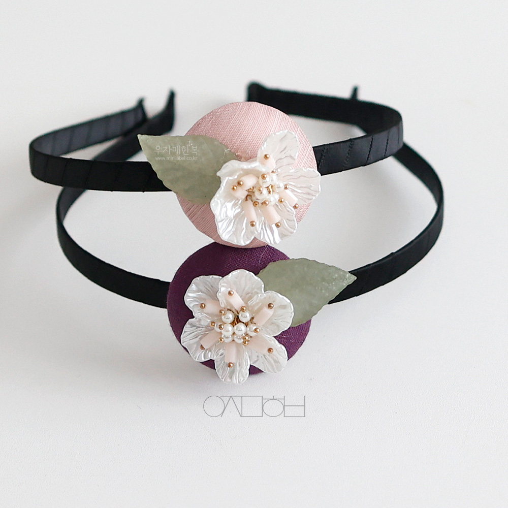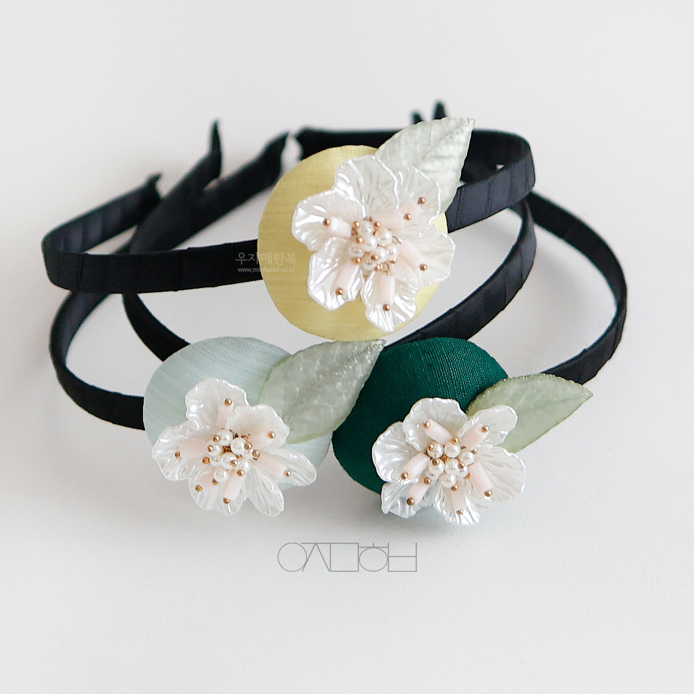 비즈로 꽃과 꽃잎을 장식하여 반짝반짝 귀여운 머리띠입니다.