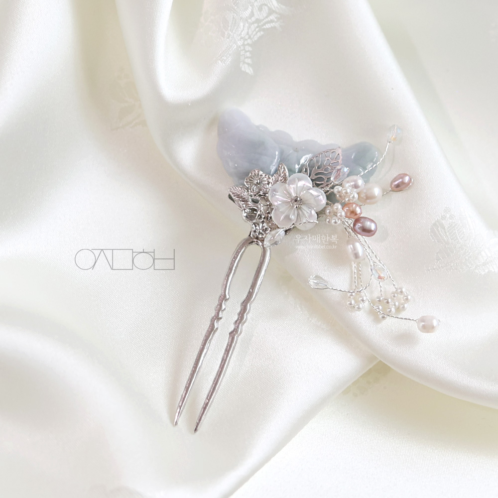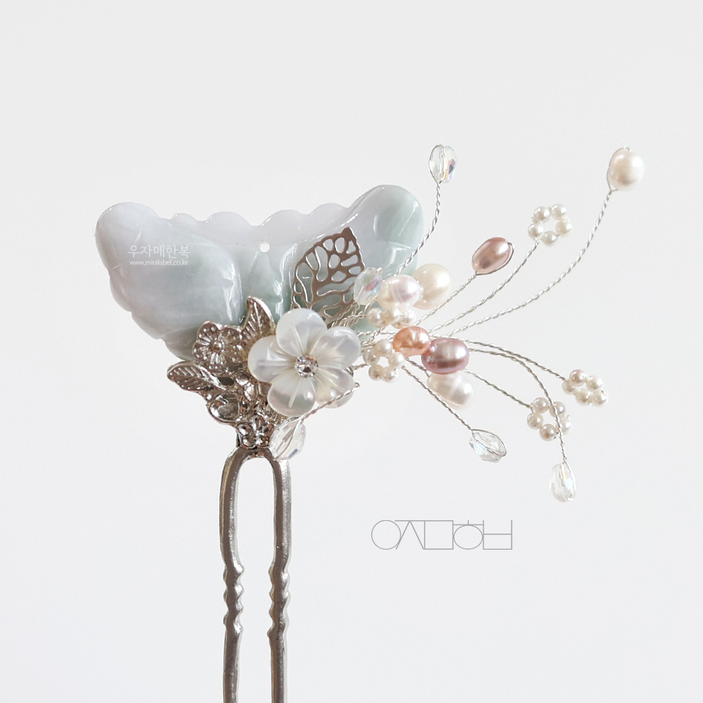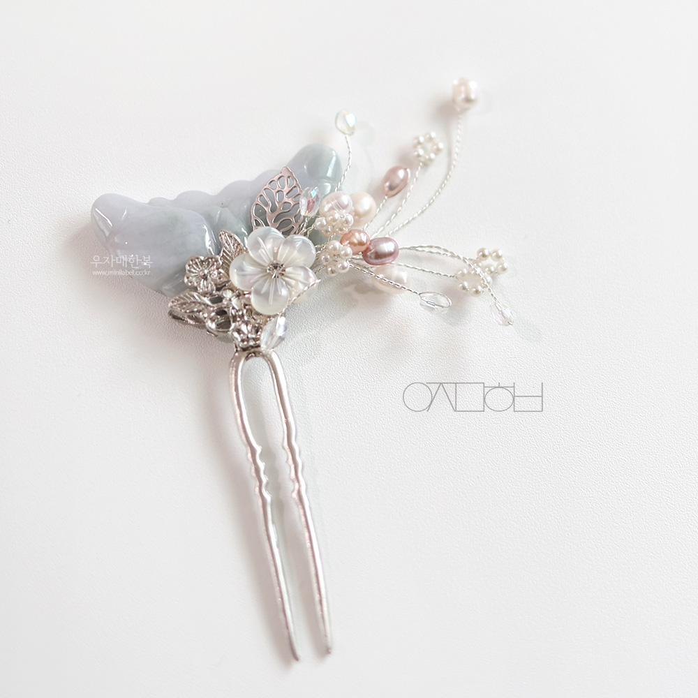천연비취옥 나비 문양의 뒤꽂이입니다.