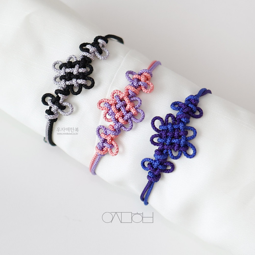 국화 모양을 전통 매듭으로 만든 팔찌입니다.