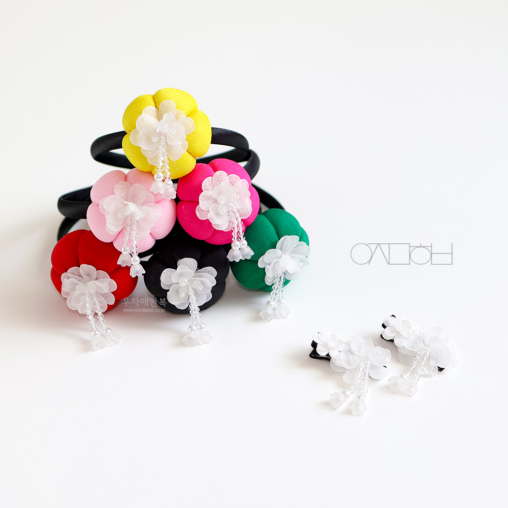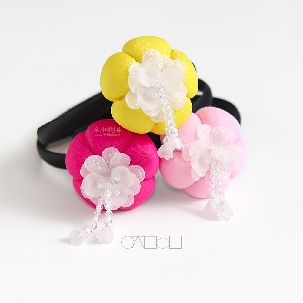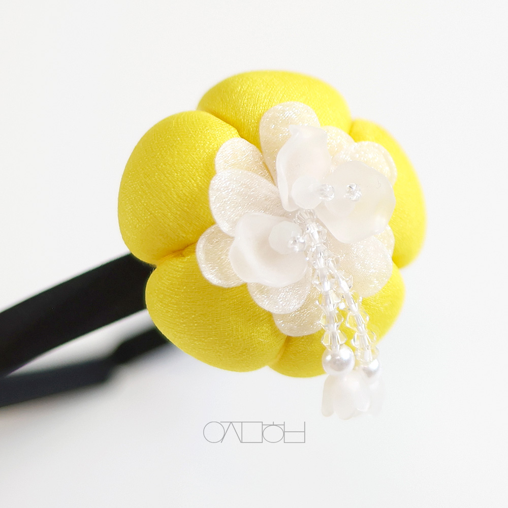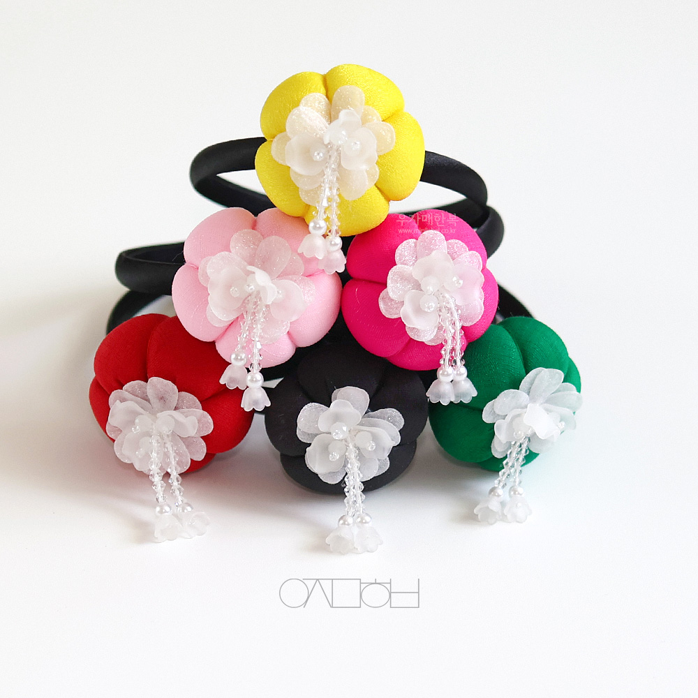 전통스러운 호박 머리띠에 꽃비즈로 반짝반짝 사랑스러운 머리띠입니다.
