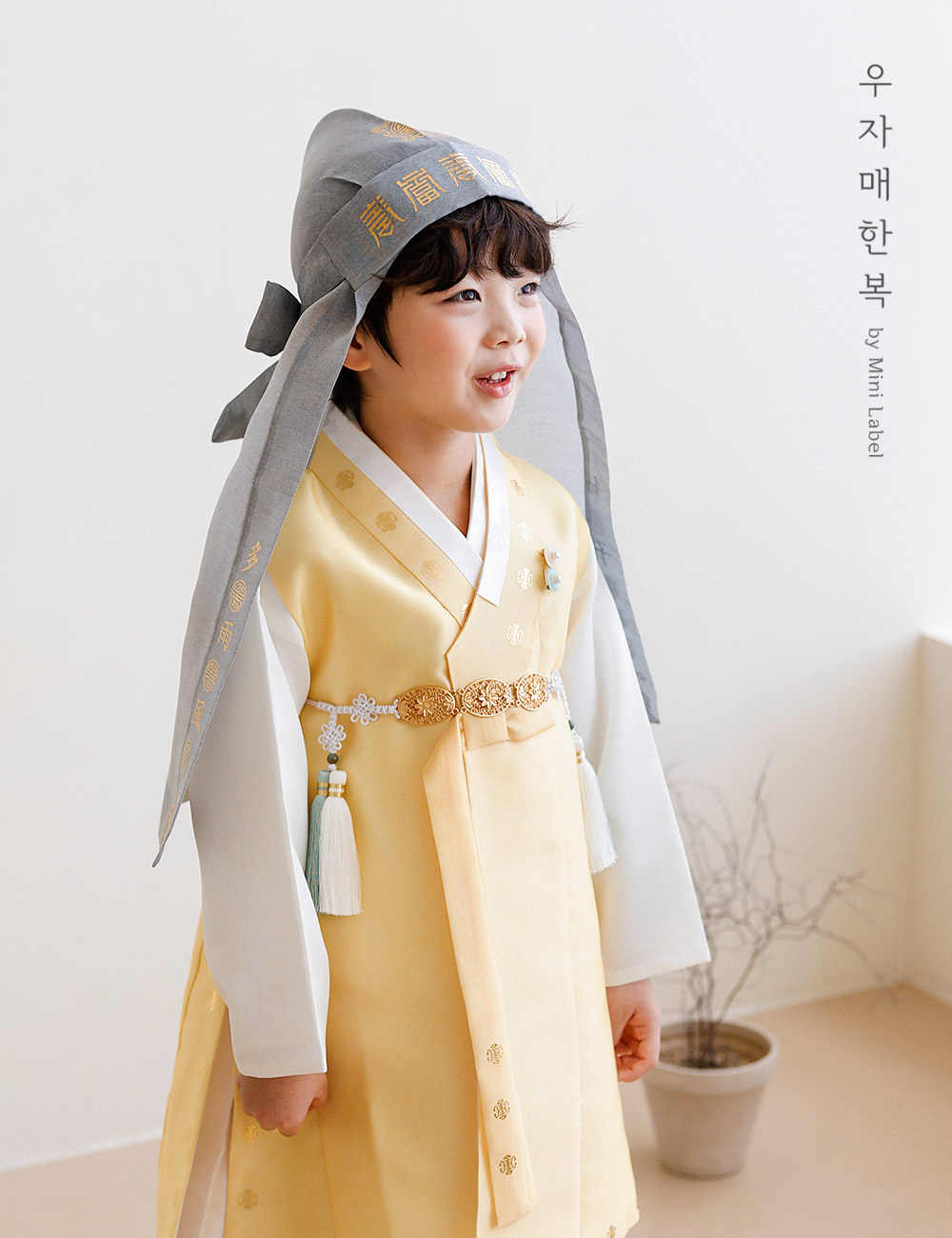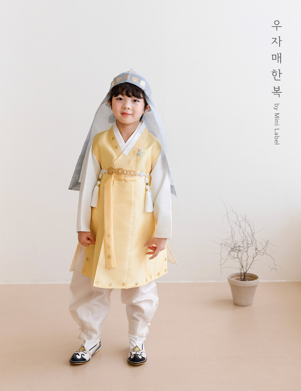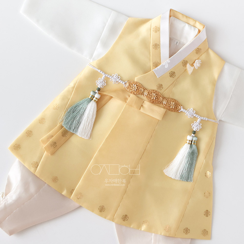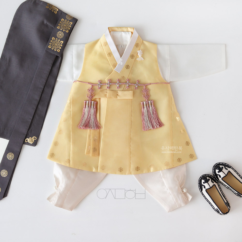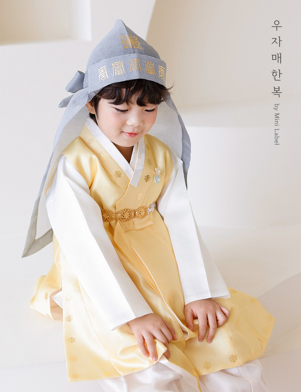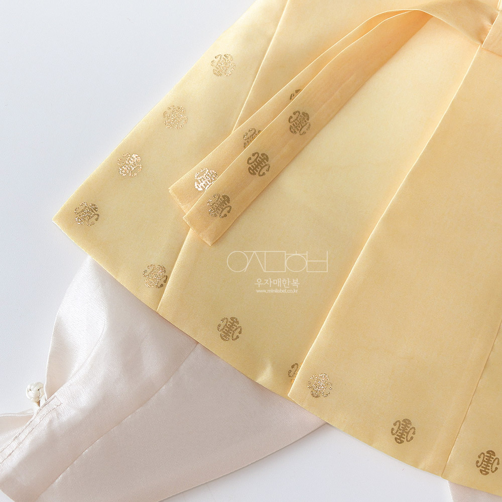 반짝반짝 빛결이 살아있는 원단에 전통박을 찍어 멋스럽고 귀여운 남아한복입니다.