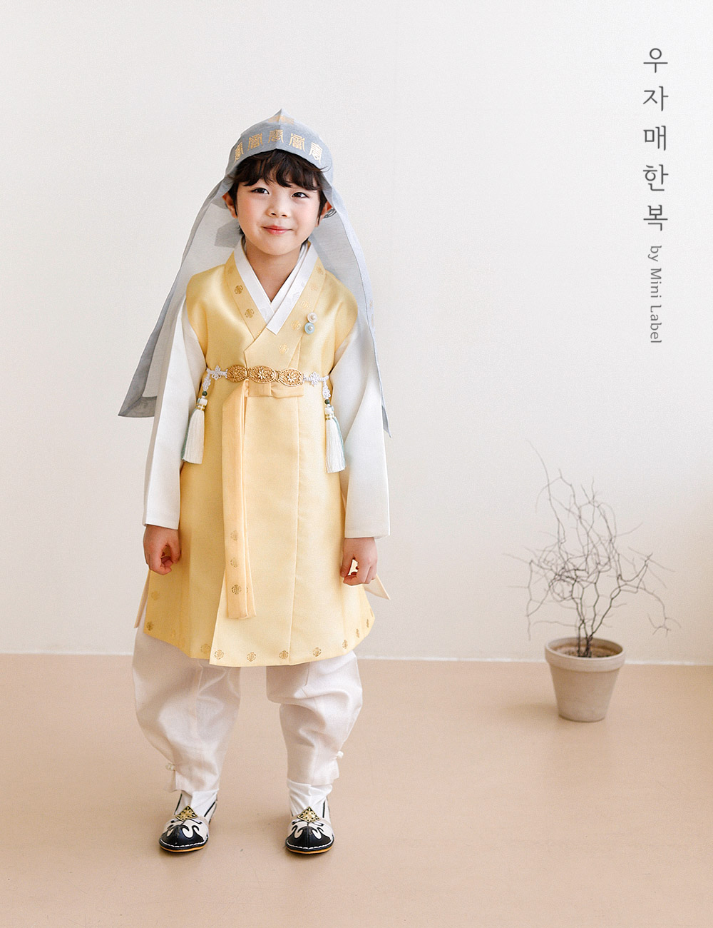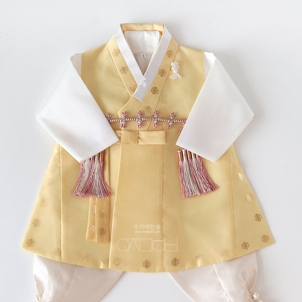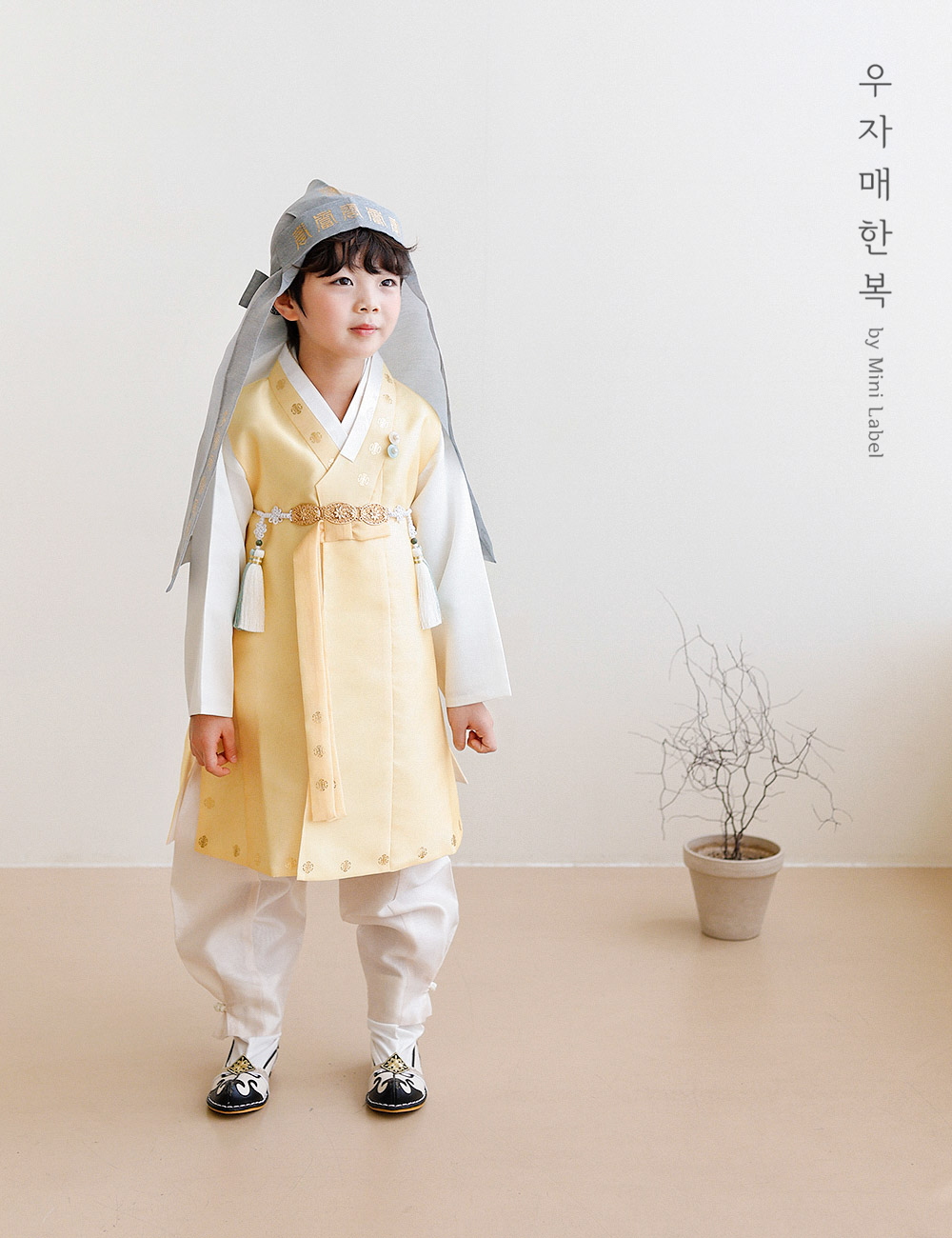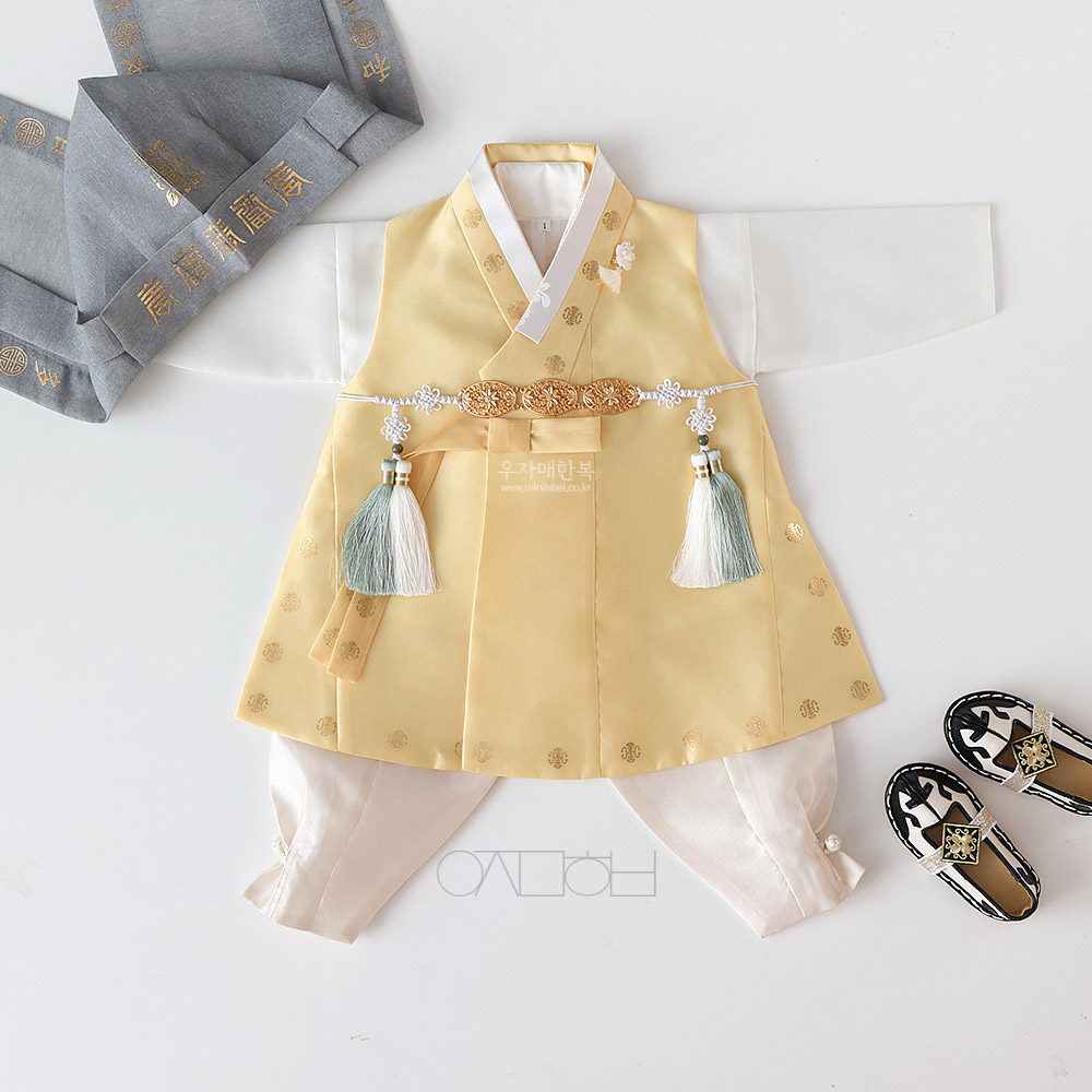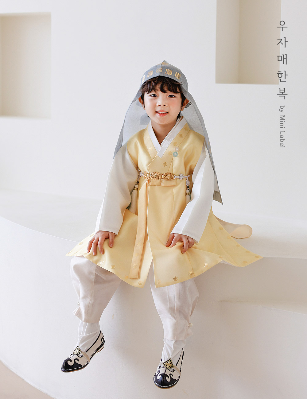 반짝반짝 빛결이 살아있는 원단에 전통박을 찍어 멋스럽고 귀여운 남아한복입니다.