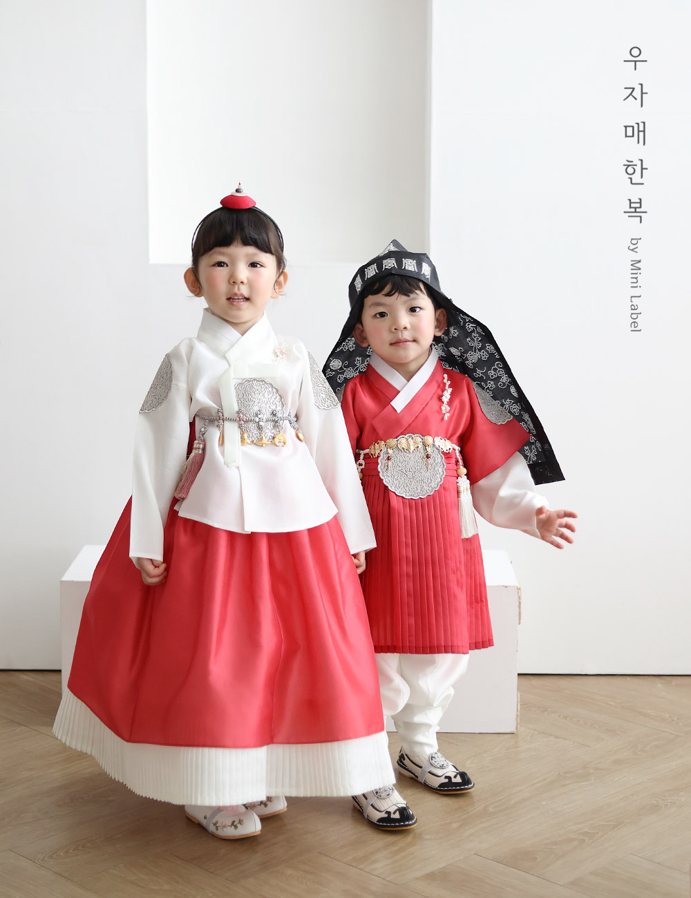 ** 커플 코디된 남아한복은 "명호 철릭" 남아한복입니다. **