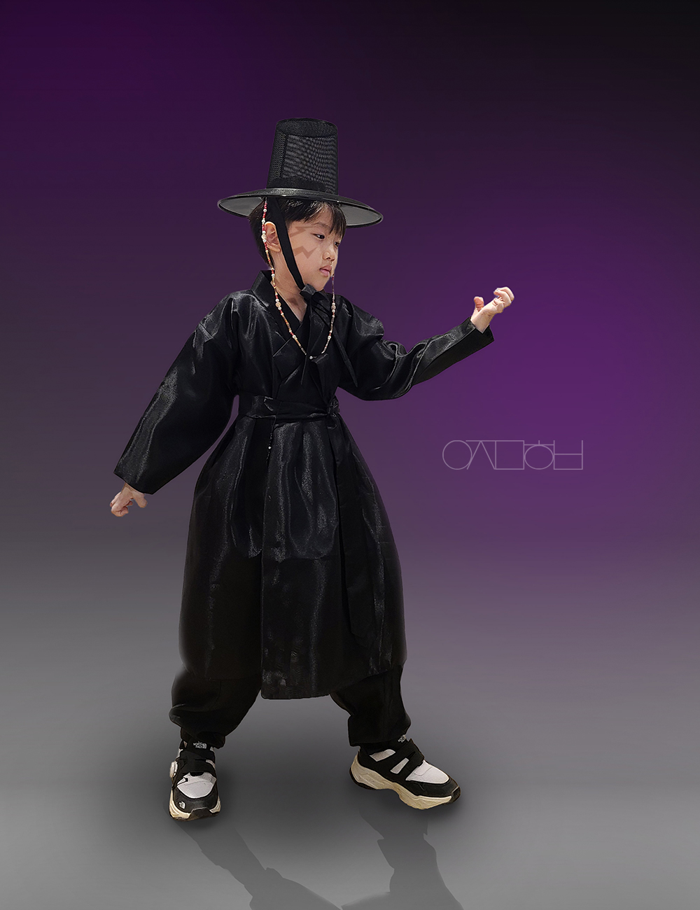 요즘 가장 핫한 사자보이즈 검정 남아한복입니다.